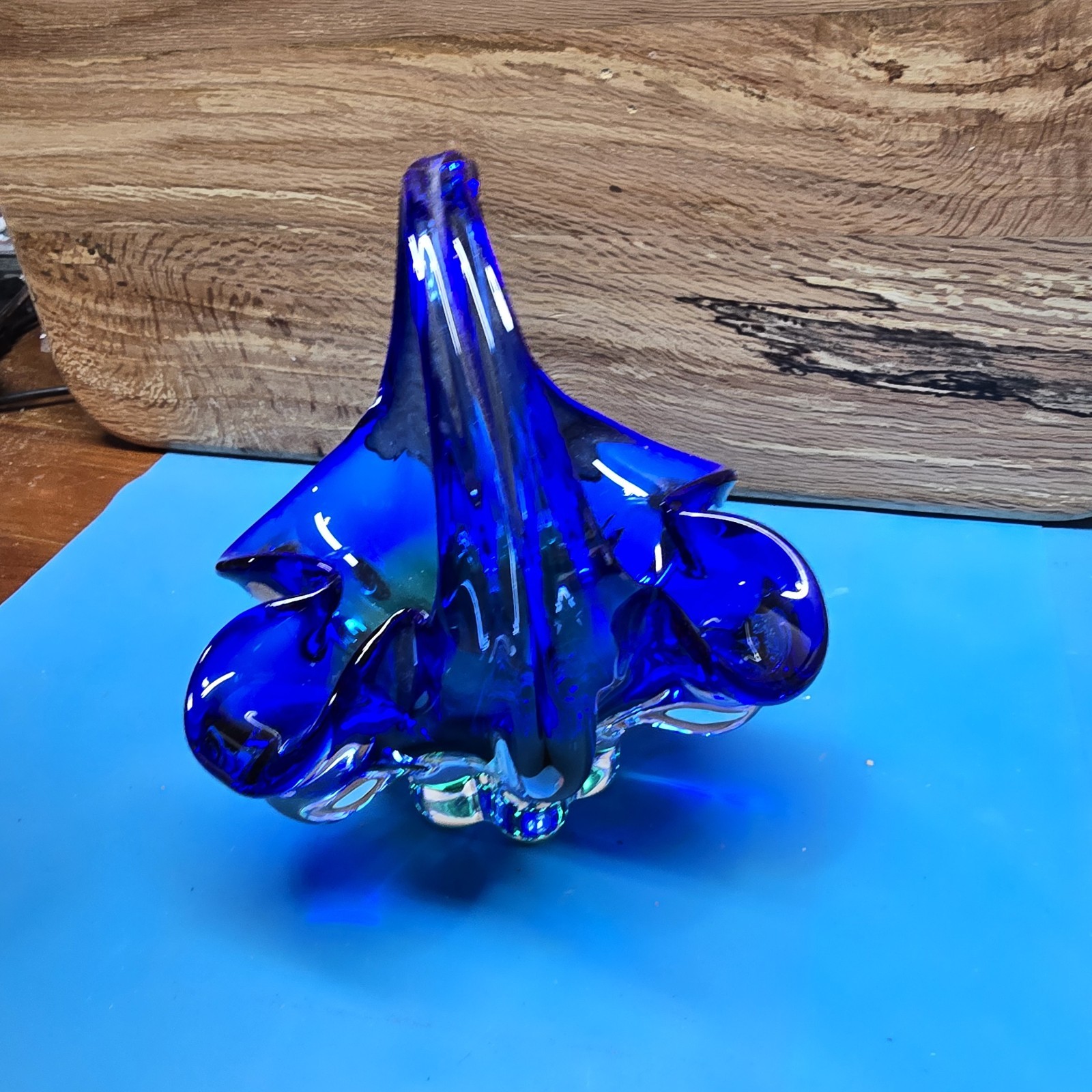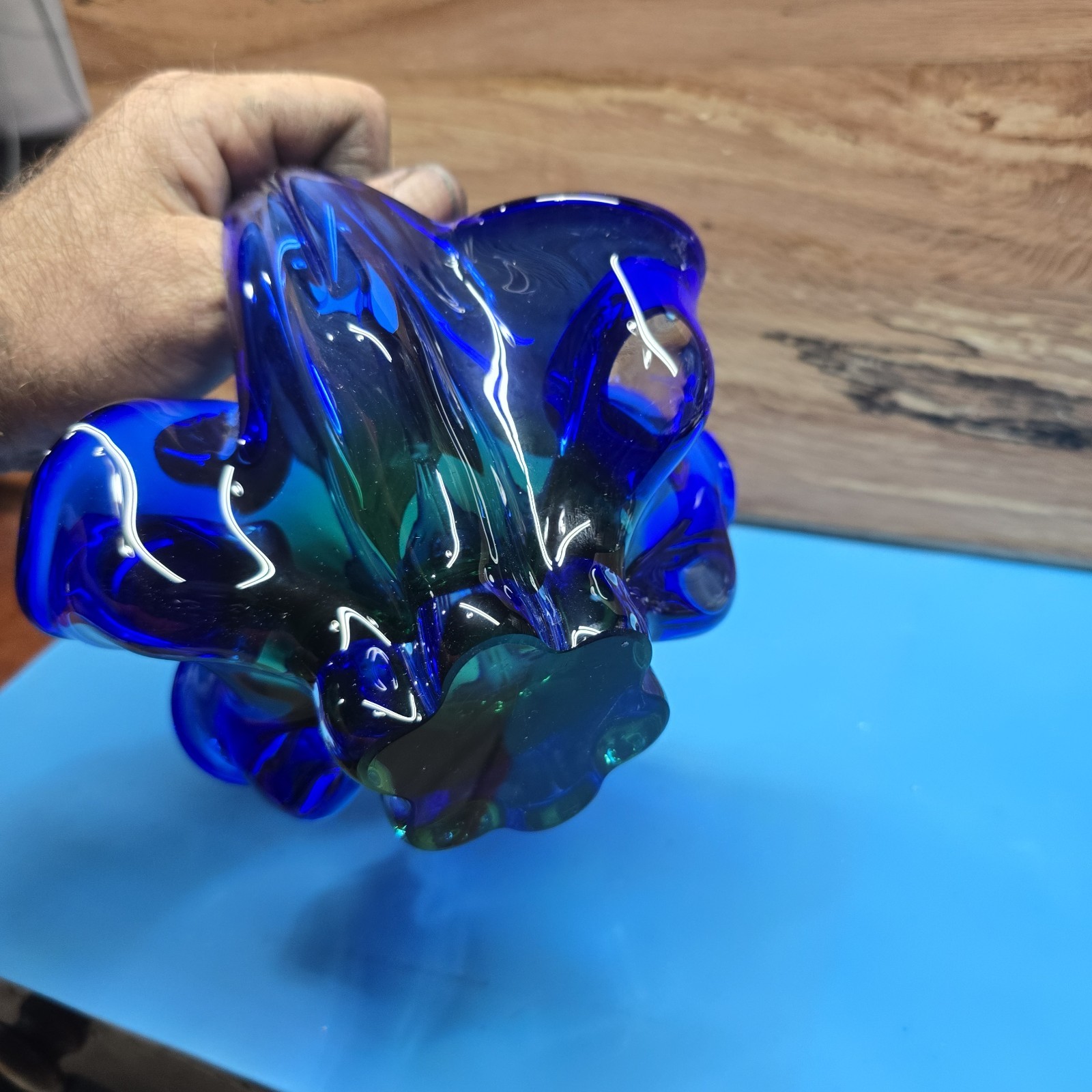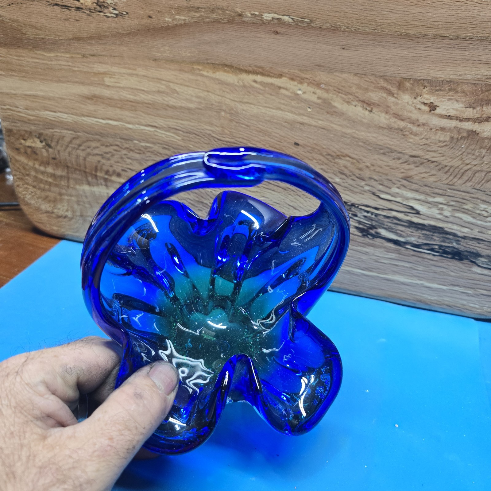 This rare Murano hand-blown glass bowl from Italy is a vintage piece with a mid-century modern style. Made entirely of glass, this decorative bowl is perfect for all occasions and adds an artistic touch to any space. The glossy finish and hand-blown production technique make it a unique and handmade piece that is sure to be a conversation starter in your home.