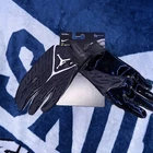 Get ready to dominate the field with these high-quality football receiver gloves from Nike. Designed for all positions, these slip-on gloves feature an adjustable wrist strap for a secure fit and knuckle protection for added safety. The lightweight and non-slip design ensures maximum performance, while the padded interior provides comfort during long games. The black color and stylish design make these gloves a must-have for any serious football player. Made with a combination of polyester, spandex, and rubber, these gloves are durable and machine washable for easy maintenance. With no mention of "condition," these gloves are perfect for any athlete looking for a reliable and high-performance accessory.
