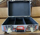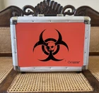 One of a kind Odyssey Biohazard Symbol Guitar Pedal Board Case/box is a must-have for any music enthusiast. It has been gig and show used by a rock star, adding to its unique character and charm. The case is designed to hold effects pedals and is suitable for those who play guitars. This item falls under the categories of Musical Instruments & Gear, Guitars & Basses, Parts & Accessories, Effects Pedals, guitar memorabilia, and Boards & Cases