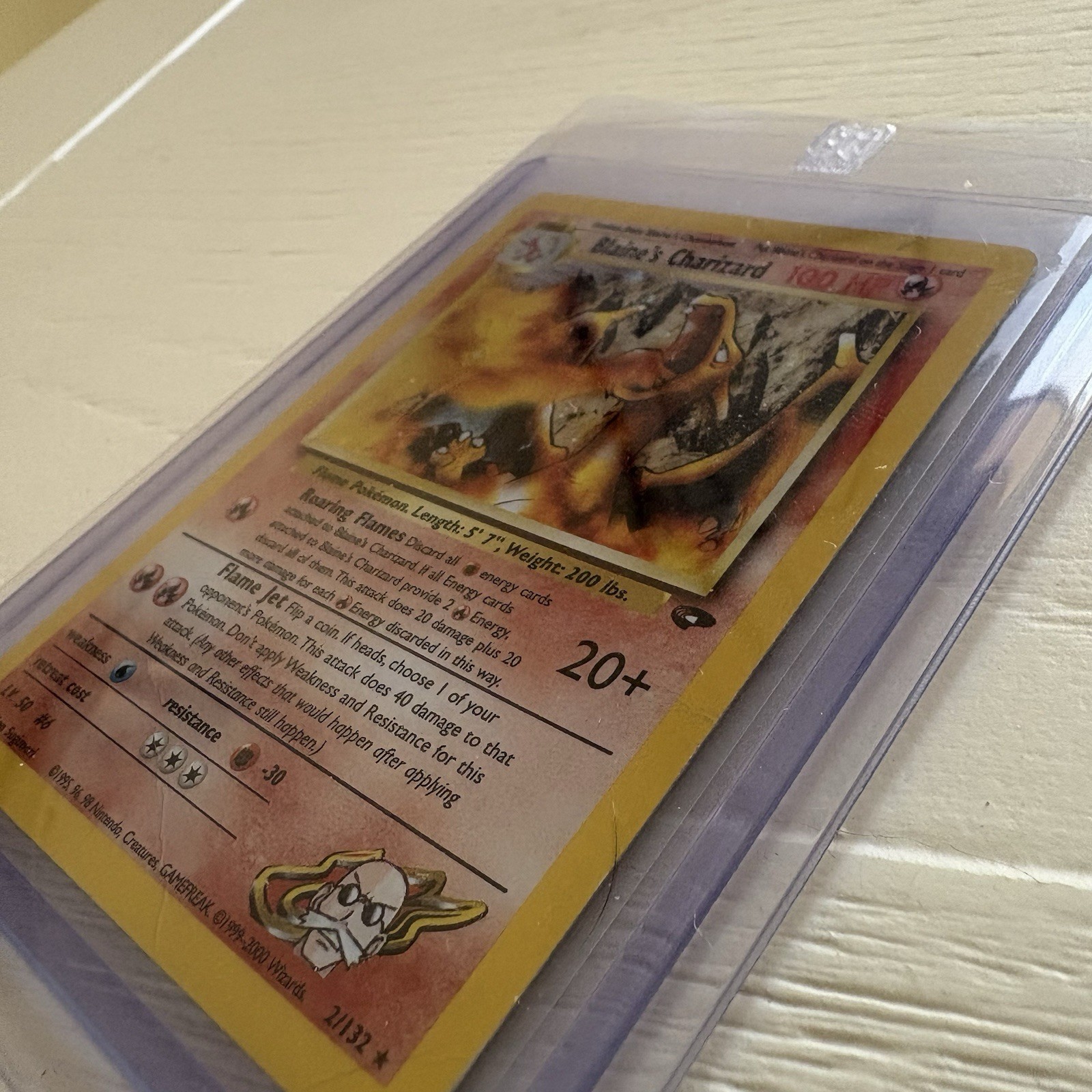 Step into the world of Pokémon with the iconic Blaine's Charizard card from the classic Gym Challenge set. This rare find, featuring the formidable fire-type Pokémon, is a must-have for collectors and enthusiasts alike. The card, numbered 2/132, showcases the artwork of Ken Sugimori and comes in the standard card size, making it a sleek addition to any collection. This 1st Edition piece, holo finished to accentuate its striking design, was manufactured by Wizards of the Coast in the year 2000. As a vintage collectible, it's a testament to the enduring popularity of the Pokémon Trading Card Game. With its English language print and sturdy card stock material, it's a testament to the craftsmanship that has made Pokémon a household name in nostalgic gaming.