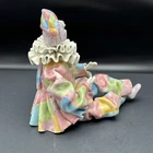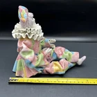 This rare porcelain figurine depicts a Pierrot clown, with a multicolor pastel color scheme that makes it perfect for display in any room. The figurine is handmade and features a high gloss finish, with a glazed surface that adds to its vintage appeal. It was made in Italy for Gumps San Francisco during the 1950s, and is an original piece. The figurine is perfect for collectors and curio cabinets, and would make a great addition to any circus or clown theme. It is signed by the artist and is part of the Pierrot Clown collection. The piece is unboxed and comes as a single item, perfect for adults who love to collect rare and unique items. It may have been holding something but what ever it was is not longer with the piece . This piece was found at an Very High End Estate Sale I will pack it carefully and get her to you ASAP Thank you for looking !