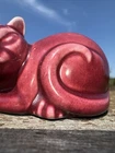 This beautiful figurine is a rare find for any collector. Made by Homer Laughlin, it features a charming cat design with a glossy red finish. The piece is made of high-quality ceramic and has a vintage feel to it. The Harlequin Animal Cat Maroon Rare Red Fiestaware Vintage figurine is a perfect addition to any decorative pottery collection. It is an original piece and was handmade in the United States. This art pottery piece is part of the Fiesta product line and is sure to catch the eye of any cat lover.