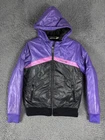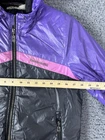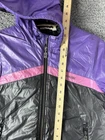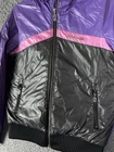 This is a very rare jacket. Small faded stain in back. (See photo) Stay warm and stylish with this rare Reebok Classic Hooded Puffer Jacket in purple, black, and pink. The jacket is made of durable nylon material with a quilted design for added texture. It features a zip closure and a hood for added protection against the elements. The jacket is designed for women and comes in a size small. The vibrant colors and classic fit make it a great addition to any winter, fall, or spring outfit. The insulation material is made of polyester, providing warmth and comfort throughout the day. Don't miss out on this colorful and fashionable piece from Reebok.