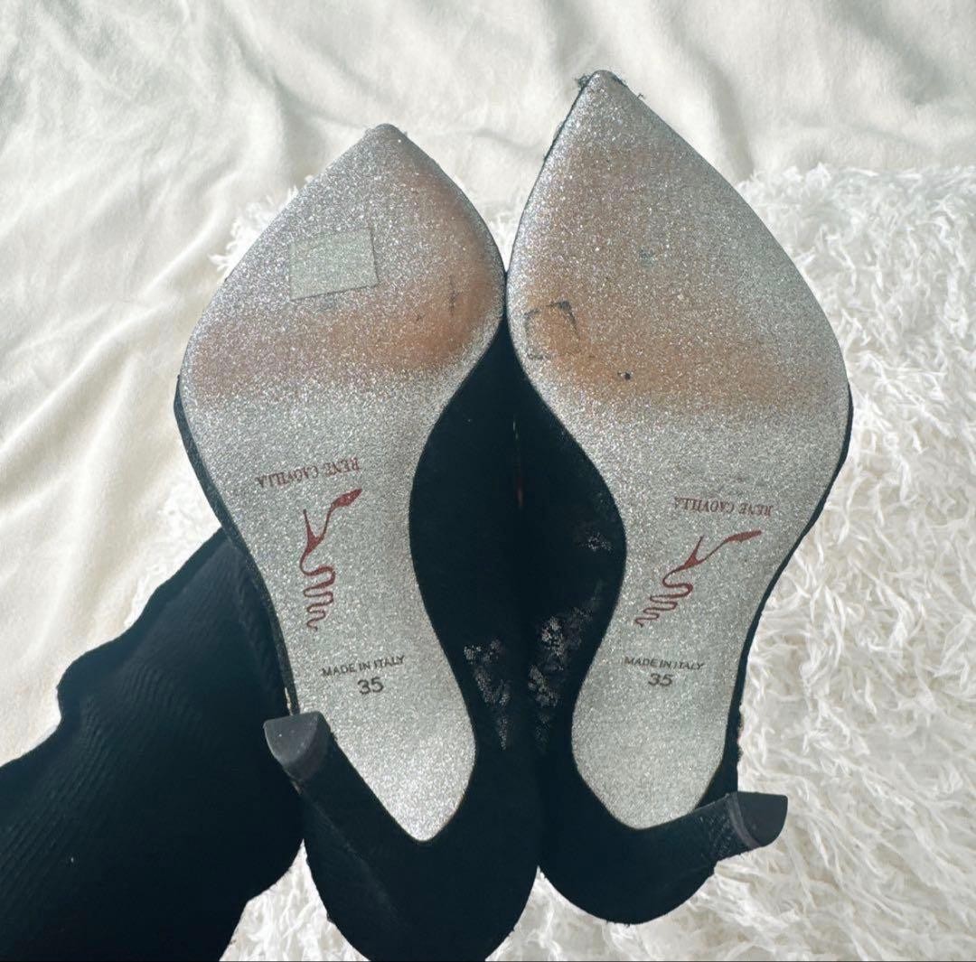 Description - Brand: Rene Caovilla - Color: Black - Embellishment: Crystals/Jewels - Size: 35 (EU) / Approx. US 5 - Elegant black high heels featuring exquisite crystal embellishments. - Comes with original box, red shoe bag, and wrapping paper. - These are pre-owned shoes and may show minor signs of wear, such as slight scuffs or subtle scratches that are not easily noticeable. - Please be aware of and accept potential age-related changes due to storage. Thank you very much for visiting my auction. Language: Japanese Please judge with a photograph. Please have a question I want to do a good deal Payment I accept PAYPAL Payoneer Please make the payment within 5 days after the end of auction. Shipping Worldwide Shipping: eBay SpeedPAK Expedited Terms of Sale If you would like to know more about this item, please contact me before bidding. Items will be sent out within 4 business days after the payment received. When there is a different problem from the indicated contents, please tell me about it within two week. I accept returns only if items did not match the description. Buyer pays return shipping. About Us Return is accepted if only the item is different from item's description. Thank you for looking!!! International Buyers - Please Note: ・Import duties, taxes and charges are not included in the item price or shipping charges. These charges are the buyer’s responsibility. ・Please check with your country’s customs office to determine what these additional costs will be prior to bidding/buying. ・These charges are normally collected by the delivering freight (shipping) company or when you pick the item up - do not confuse them for additional shipping charges. ・We do not mark merchandise values below value or mark items as “gifts” - US and International government regulations prohibit such behavior.