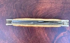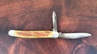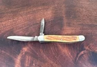 This vintage Sabre Japan 5 folding pocket knife is a rare find for collectors and enthusiasts alike. The knife features two stainless steel blades with a clip point blade type and a plain edge blade range of under 2.75 inches. The manual opening mechanism and slipjoint lock type make it easy to use with both hands, and the ambidextrous dexterity ensures a comfortable fit for all. The knife's brown color and vintage design add to its appeal. This original, factory-manufactured knife is a must-have for any knife, sword, or blade collector. Don't miss out on the chance to add this unique piece to your collection. Pre-owned condition. See photos.