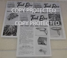 This is a 1st edition copies of original Snap-on Tools Advertising flyers (The Tool Box) from the 1950's. These are from April 1953, August 1953 and Spring-Summer 1954. These were sent to the dealers to help introduce new tools as they came out. Very rare and highly collectible item so be sure to bid and add this to your collection. The copy protected writing will not be on the one you receive. I am also listing other copies of original sales flyers from the 1920's to 1960's and early original catalogs. Yes I will combine shipping on multiple purchases whenever it is possible Be sure to add me to your favorites list ! Check out my other items ! Powered by SixBit's eCommerce Solution