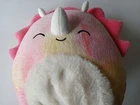 Kellytoy Squishmallows Trinty the Dinosaur 12" stuffed plush toy. Eyes-Closed kind of orange, yellow, pink tie dye design. The plush is used but in great condition clean with no marks, stains, smells, loose threads, torn or missing parts. Additional photos upon request. Item will be shipped in safe and secured packaging.