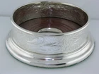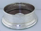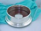 Sterling Silver & Wood - Tiffany & Co - Audubon - Wine Coaster. A hard to find piece in the Tiffany Audubon collection. The coaster has Birds, Japanesque Foliage and even a Spider web all on a Honeycomb background. There is a Wooden base with a sterling center if you wanted to have it monogrammed. The base has a green felt on the bottom. Marked: Tiffany & Co, Sterling Silver, .925 Measurements: 5 1/4" in diameter at the base, Just under 4 1/4" inside diameter of top rim and measures 1 3/4" in height. Monograms: none Condition: Great Condition. FREE SHIPPING IN THE USA ONLY!! Any dark spots are only shadows from taking the pictures. Thank you.