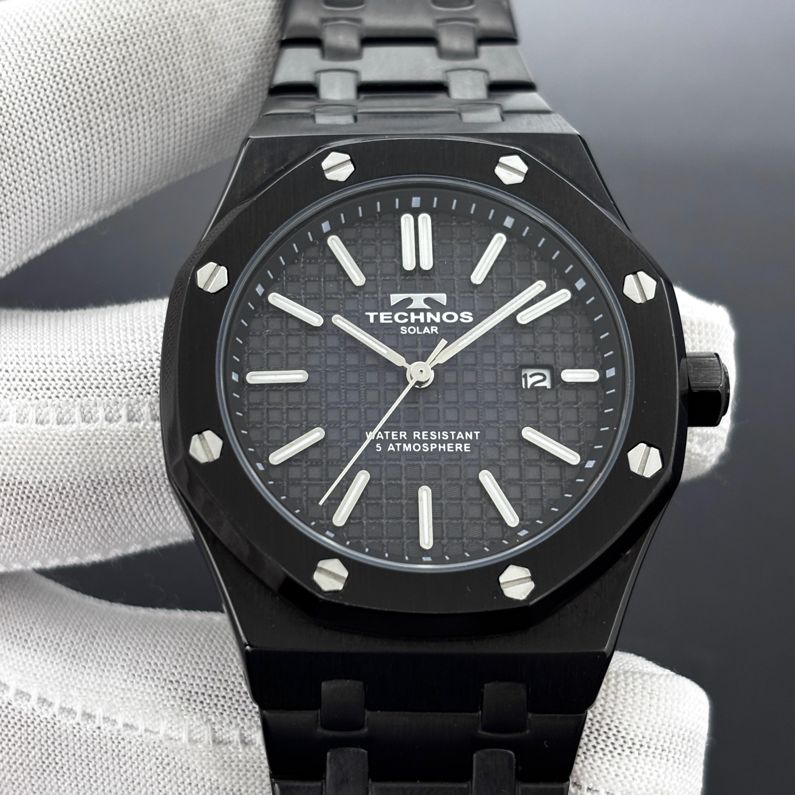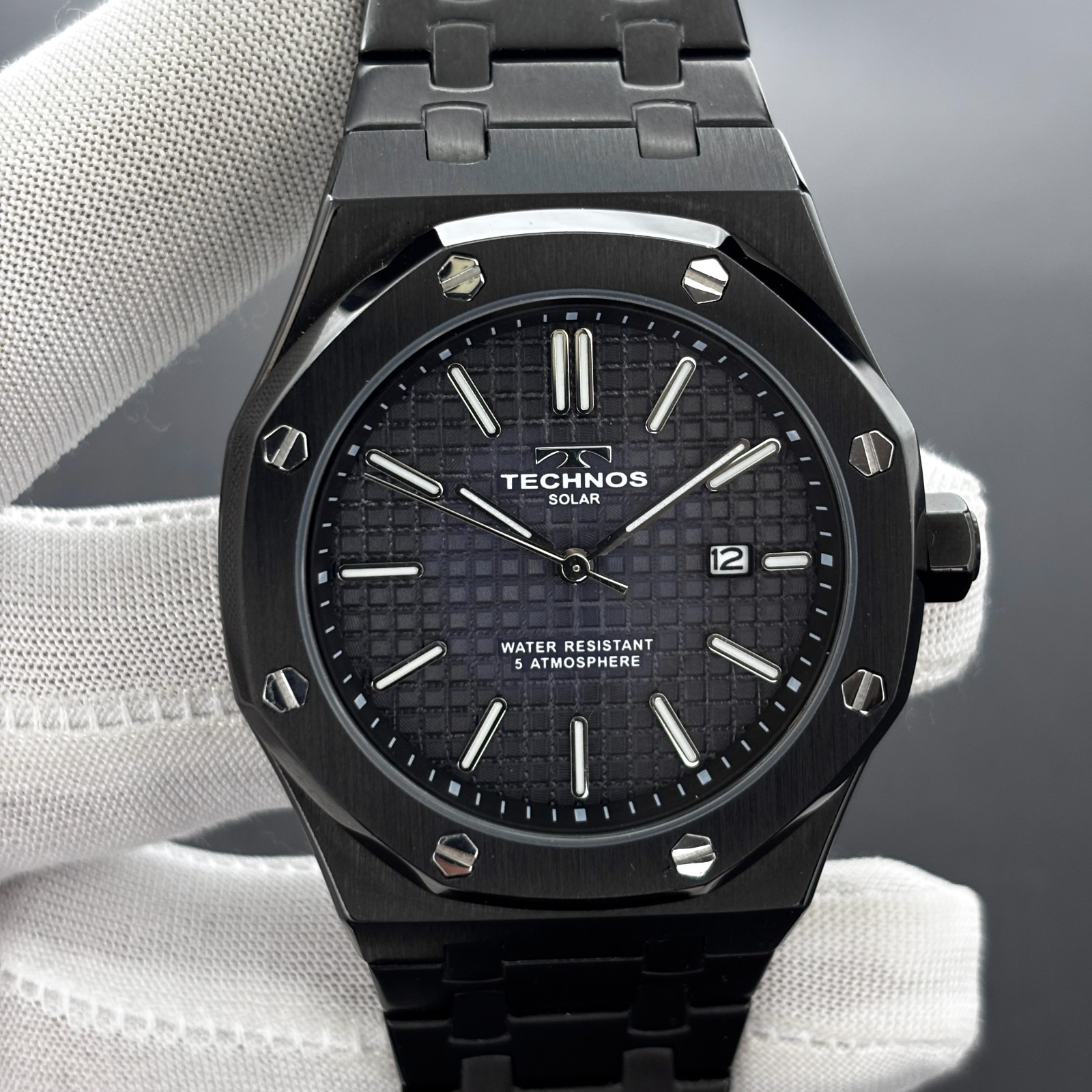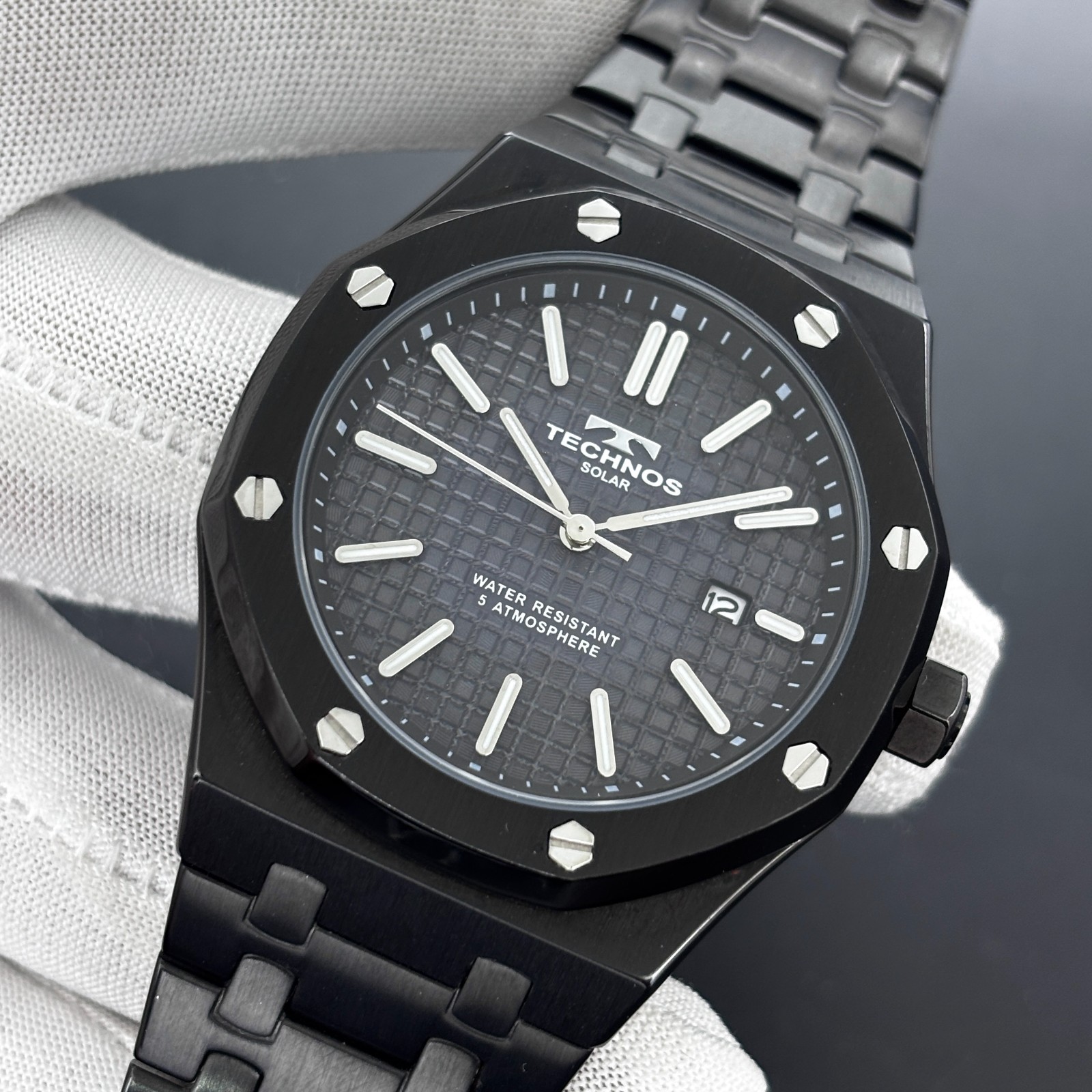 Rare Technos Solar "Tapisserie Dial" Royal Oak Shape Men's Quartz Watch TT9B64 Reference No# TT9B64 Movement: [ Quartz ] Selling the rare Technos Solar Collectible Watch. This watch features a bold Tapisserie-patterned dial that adds dimensional depth and visual sophistication to its design. The watch showcases a rare and distinctive Royal Oak-inspired design, enhancing its uniqueness and visual appeal. The Technos showcases a bold, contemporary design that distinguishes it from conventional timepieces. Its striking aesthetic and distinctive character make it instantly recognizable and truly memorable. The watch features an elegant dial accented by silver and white hands and matching hour markers, enhancing its refined appeal. Condition Details: The watch has very nice cosmetic condition, with some signs of usage. Functional Details: The watch is in excellent working condition. Date window at 3 o'clock. The watch has luminous hands and hour markers that glow in the dark and low light. The watch is equipped with a rechargeable solar-powered cell. Band Details: The watch is equipped with its original St, Steel Bracelet. Approximate Measurements:- [ Case Size: 42 MM ] [ Case With Crown: 46 MM ] [ Lug To Lug Size: 51 MM ] [ Bracelet Wrist Size: 6.4-Inches ] [ End link Width: 16 MM ] SHIPPING DETAILS: We offer worldwide shipping. Handling/Reinspection Time is 3 Working Days. UPS Shipping Service Charges: $26.99 Takes Only 7 to 14 Days. (Insured And Secured) We declare low values On Customer Demand (under 50-USD) on our parcels and mark them as gift items to help our buyers avoid unnecessary taxes on vintage and used watches. However, we cannot guarantee tax-free imports as every country and state has different import tax policies. We strive to provide an accurate representation of the item through detailed descriptions and high-quality photos, which shows more clearly signs of usage. Please consider photos as an integral part of the description, as they can provide a more accurate depiction of features, size, and condition. We take pride in offering our customers a true representation of the item so they can make an informed decision. If you have any questions or doubts, please do not hesitate to contact us and we will do our utmost to provide a satisfactory response to our valued customers. We welcome best offers, so please feel free to make your best one, The worst I can do is Apologize. :) However please keep in mind that we pride ourselves on valuing our items highly, because these are hard to find collectible items. Please don't undervalue them when making an offer, we appreciate your respect in this matter. We believe that Honesty is the key to success, and you can trust us to provide you with the best service and quality products.We would be honored to have you as a customer. The buyer's positive feedback would be greatly appreciated. Thanks for visiting "JUST ANOTHER WATCH" SKU> R-041-MPC
