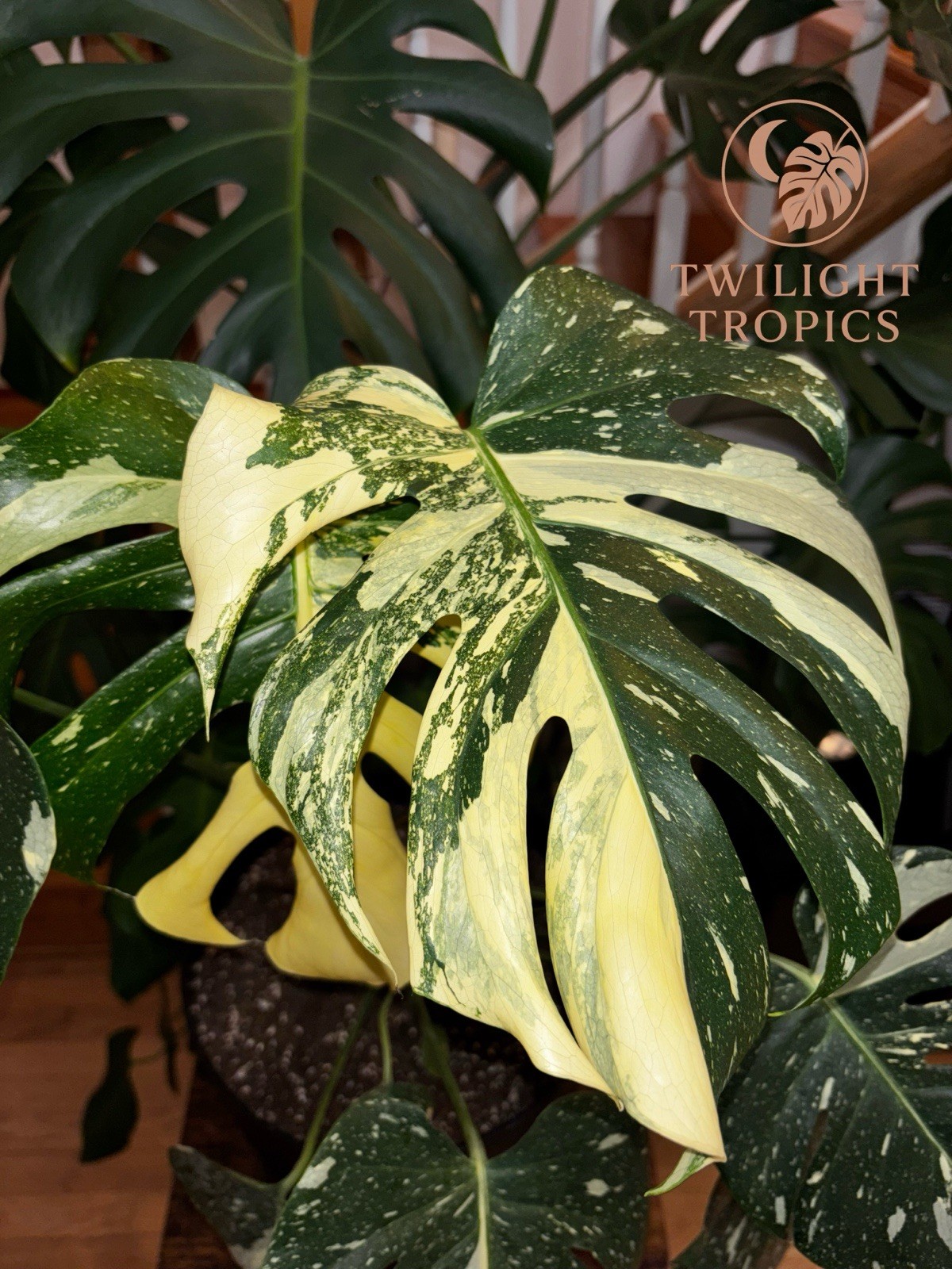 Rare Thai Constellation Monstera – Variegated Monstera Albo Own a showstopper: a genuine Thai Constellation Monstera with creamy white variegation on sturdy, glossy leaves. This highly sought-after variegated aroid is perfect for collectors and interior spaces that need a focal plant. Available Options Rooted Cutting – established roots, ready to pot Unrooted Cutting with Node – ideal for propagation Details & Care Botanical Name: Monstera deliciosa 'Thai Constellation' Light: Bright, indirect light—avoid hot direct sun that can scorch variegation Water: Water when the top 1–2 inches of soil are dry; do not let sit in water Soil: Well-draining mix with good aeration (add perlite or orchid bark) Humidity: Prefers moderate to high humidity; benefits from occasional misting What You Will Receive One Thai Constellation Monstera in the selected variant Care card with planting and aftercare tips Secure packaging to ensure safe transit Packaging & Shipping Plants are carefully packed using protective wrapping and a sturdy box. Items are shipped promptly to minimize transit time. Please choose the shipping option that suits your location and season. We do not ship to PO boxes for live plants. Important Notes Variegation patterns are unique — your plant will be similar but not identical to photos. This plant is toxic if ingested; keep out of reach of pets and children. Live plant condition guarantee: packages damaged in transit should be reported within 2 hours with photos. Questions? Message us before purchase for size/variant availability or photo requests. Add this rare Thai Constellation to your collection today — limited stock available.
