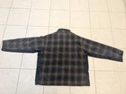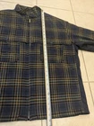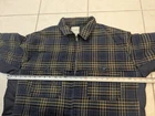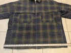 This one is an excellent condition. I have the measurements in the photos. Just noticed that on one of the arms on the back side there is a paint spot on the sleeve. This could be worked out with some effort. Please ask if you have any questions. This is a men's mid-length blue plaid flannel jacket in size XL, featuring a quilted design. The jacket has a spread collar, full zip closure, and button accents. It is designed for casual, workwear, and travel occasions, with a polyester lining and insulation for warmth. The jacket is a puffer style with a designer, USA, outdoor, hip hop, and sports theme. It is suitable for winter, fall, and spring seasons.