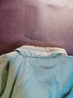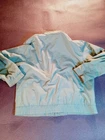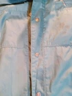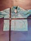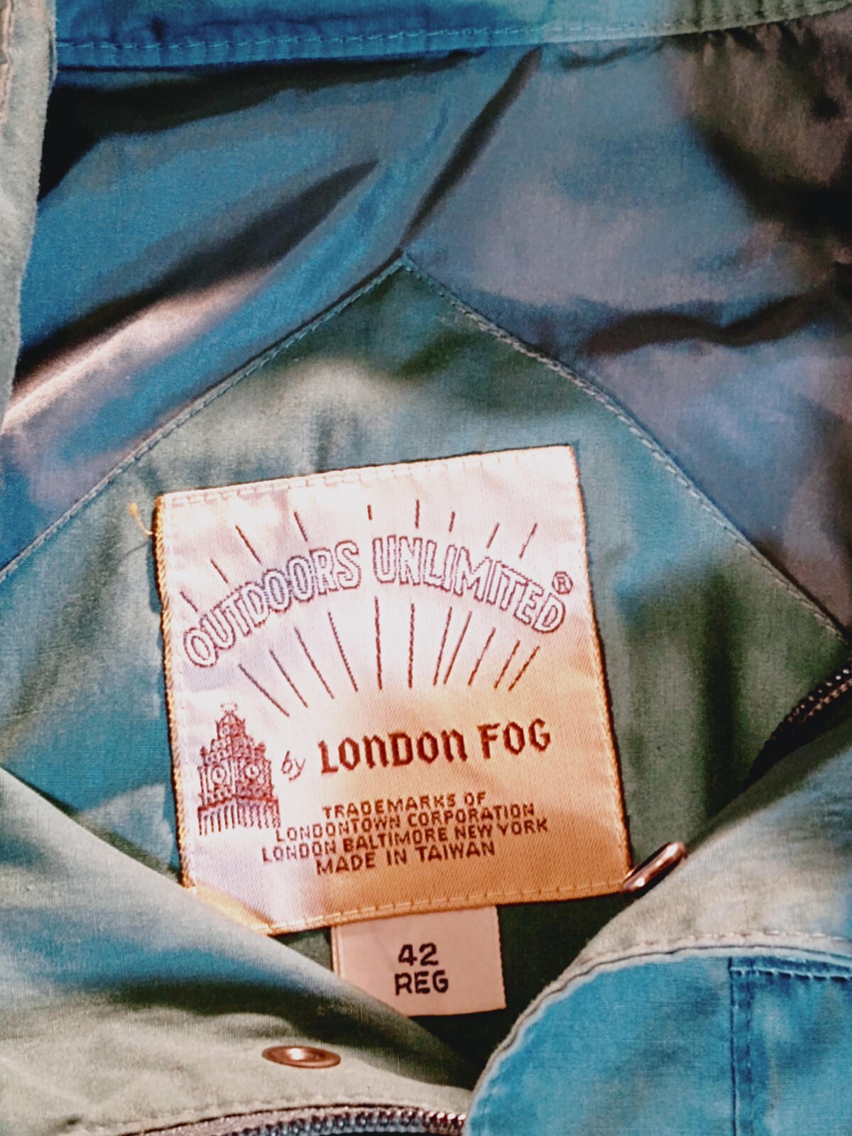 This is a vintage London Fog Outdoors Unlimited Thinsulate jacket in a light green color, size 42 regular. It features a solid pattern, zip and snap closure, polyester/cotton lining, and synthetic insulation. The jacket is hooded, padded, and oversized, making it suitable for outdoor activities in winter. It has a retro style with a blend of polyester and cotton fabric, perfect for casual or travel wear.