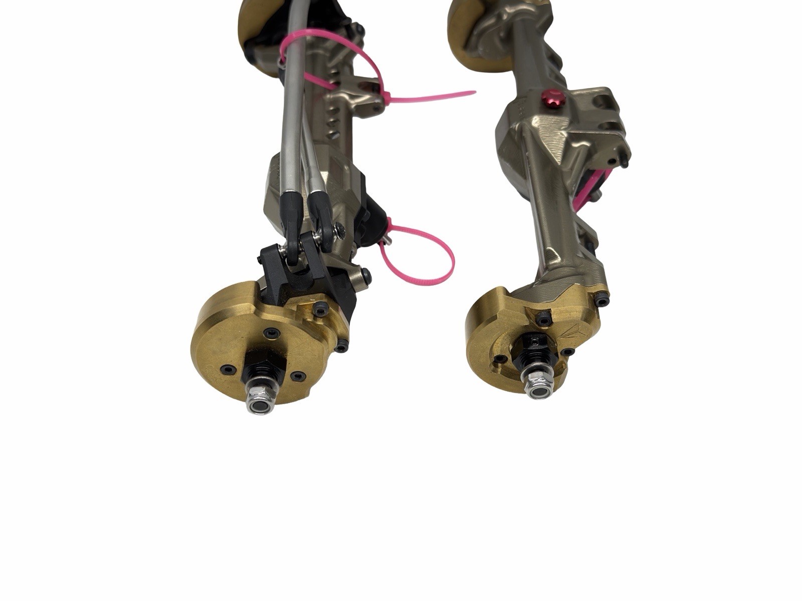 Rare Vanquish Dark Earth F10 Portal Front & Rear Axles w/ Upgrades – #17462 Condition: Used This listing is for a rare set of Vanquish F10 portal front and rear axles finished in the highly sought-after Dark Earth color. These axles have been lightly used and show minor cosmetic scratches consistent with careful use; no structural or functional issues are present. Features & Upgrades Include: • Rare Dark Earth F10 portal axle housings • Black anodized Vanquish aluminum third members (front & rear) • Vanquish internal gears and components • Brass weights installed on both front and rear axles • Vanquish black aluminum front knuckles These axles are fully assembled and ready to install. Due to the rarity of the Dark Earth housings and the included upgrades, a comparable build would cost approximately $900–$1,000 new, assuming the housings could even be sourced. Shipping & Handling: • Orders ship within 24 hours of payment (excluding weekends and holidays) • Standard shipping via USPS, UPS, or FedEx • Packaged securely for safe delivery Please Note: • All RC products are sold as-is • Feel free to message us with any questions before purchasing Check out our store for more RC parts and vehicles!