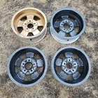 Extremely hard to find vintage 1960's Foresight Ventures Flag Custom Wheels 5-spoke 'mag" wheels in black and gold. Made in Oakland, California USA. Removed from a Chevrolet Nova. Wheels are in well used and working condition. Dings, scratches, spray paint and tarnishing from use or storage as shown. No cracks or repairs but they will need to be refinished before use. No center caps or lug nuts are included. Perfect for any vehicle restoration. This is a free shipping item within the US so buy now!
