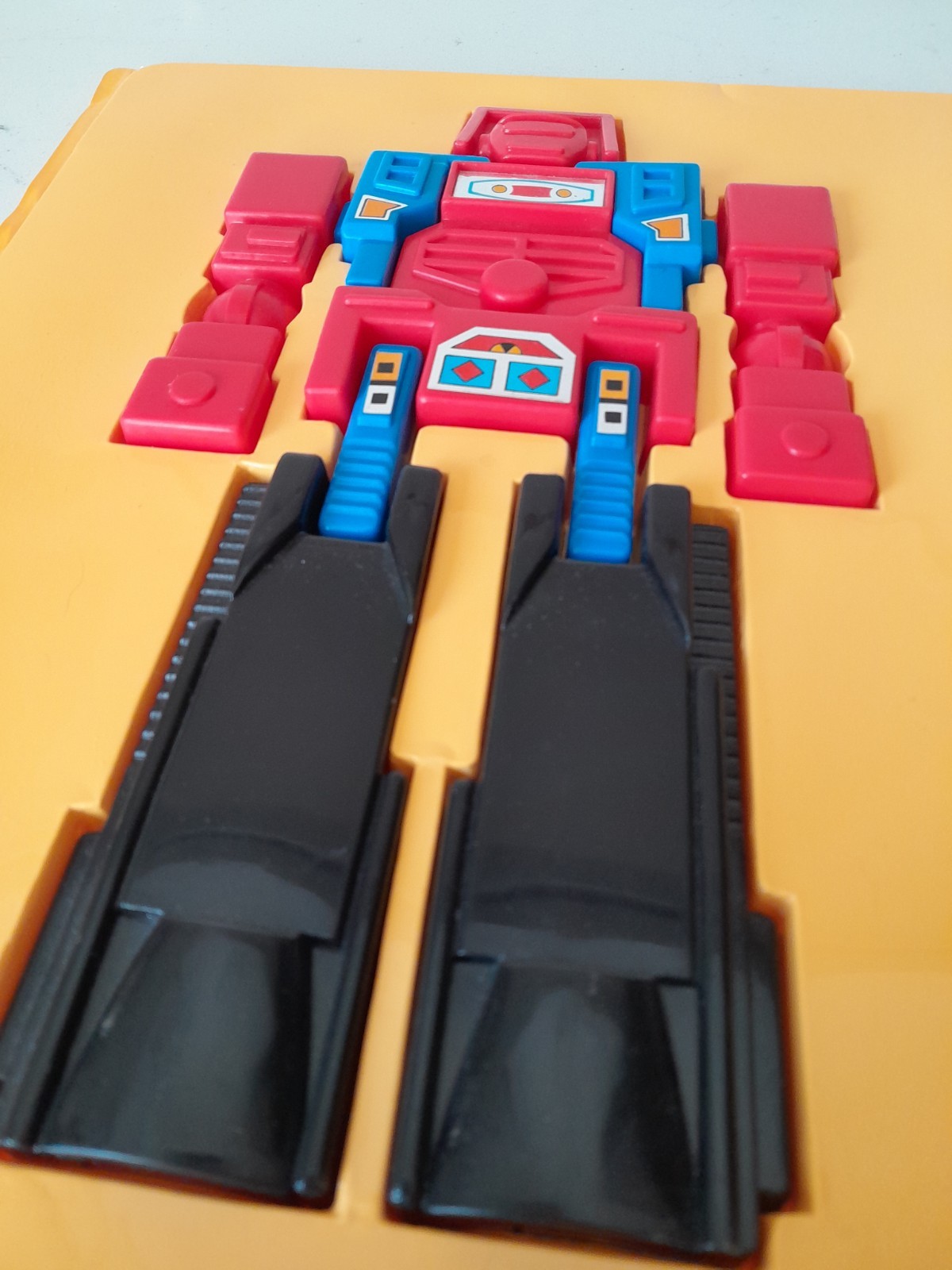 This product is a rare vintage 1980s Go-Bots Transformers style unbranded tray puzzle, featuring a robot character like from the Transformers TV show. Made of plastic. Complete and in retro condition, this piece is a must-have for collectors of vintage action figures from the 1980s.
