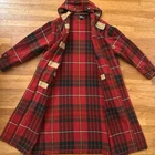 Vintage 1990 Polo Ralph Lauren Plaid Wool Duffle Coat - very rare vintage ralph lauren piece. Long heavy weight wool coat with a red plaid tartan pattern. Has braided cord wooden toggles. A couple large pockets in the front. Very fashionable and functional. Classic piece. Great for fall and winter. - in good vintage condition, there are a few very small pinhole size holes, they are not visible while wearing and you can only see them upon close inspection. - tag size M, measures 28” from pit to pit, 48” length from top of shoulder to bottom hem, sleeves 23” from hem to shoulder stitch. All sales final. Please review photos and measurements before purchase. Message me with any questions.