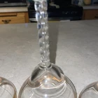The product is a rare vintage set of three Libbey glass cocktail glasses with a unique gold band swirl stem design. Standing at 5 1/4 inches tall, these elegant glasses are perfect for all occasions and are made of clear glass. The vintage pattern adds a touch of nostalgia while the brand's reputation for quality ensures they will be a sophisticated addition to any table setting. Preowned gold gilded has wear spots due to age . No chips or cracks preowned flaws.