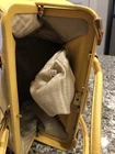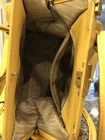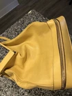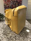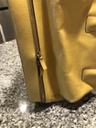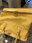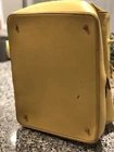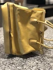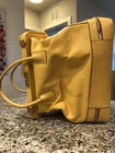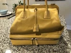 This vintage Prada Madras Cerniera Doctor Bag is a rare find for any fashion enthusiast. The exterior is crafted from high-quality leather in a deep yellow color, with gold hardware accents. The bag features a top handle style and an extra-large size, making it perfect for everyday use. Perfect for a doctor or office job . The bottom can hold papers and folders . It is a beautiful handbag and briefcase style in one ! The bag is an authentic Prada product, made in Italy with the brand's signature attention to detail. It has a satchel/top handle bag style and a doctor's bag theme, making it a unique and stylish addition to any collection. The handle/strap material is also leather, and the bag is pre-owned, adding to its vintage charm.