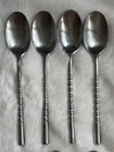 Add a touch of Mid-Century Modern style to your dining table with this vintage Stanley Roberts IBIZA flatware set. Made of durable stainless steel, this set includes 4 dinner knives, 4 dinner forks, 4 soup spoons, 6 teaspoons, 3 salad forks, and a sugar spoon for a total of 22 pieces. They have a beautiful silver finish with handles that feature a unique ring pattern that adds a touch of elegance to your table setting. This reusable and dishwasher-safe set is perfect for all occasions and is sure to impress your guests. The set was manufactured in Japan and has a matte finish. The item length can be seen in the photos, and this set weighs a total of 3 lbs. Don't miss out on this discontinued and rare find from Stanley Roberts.