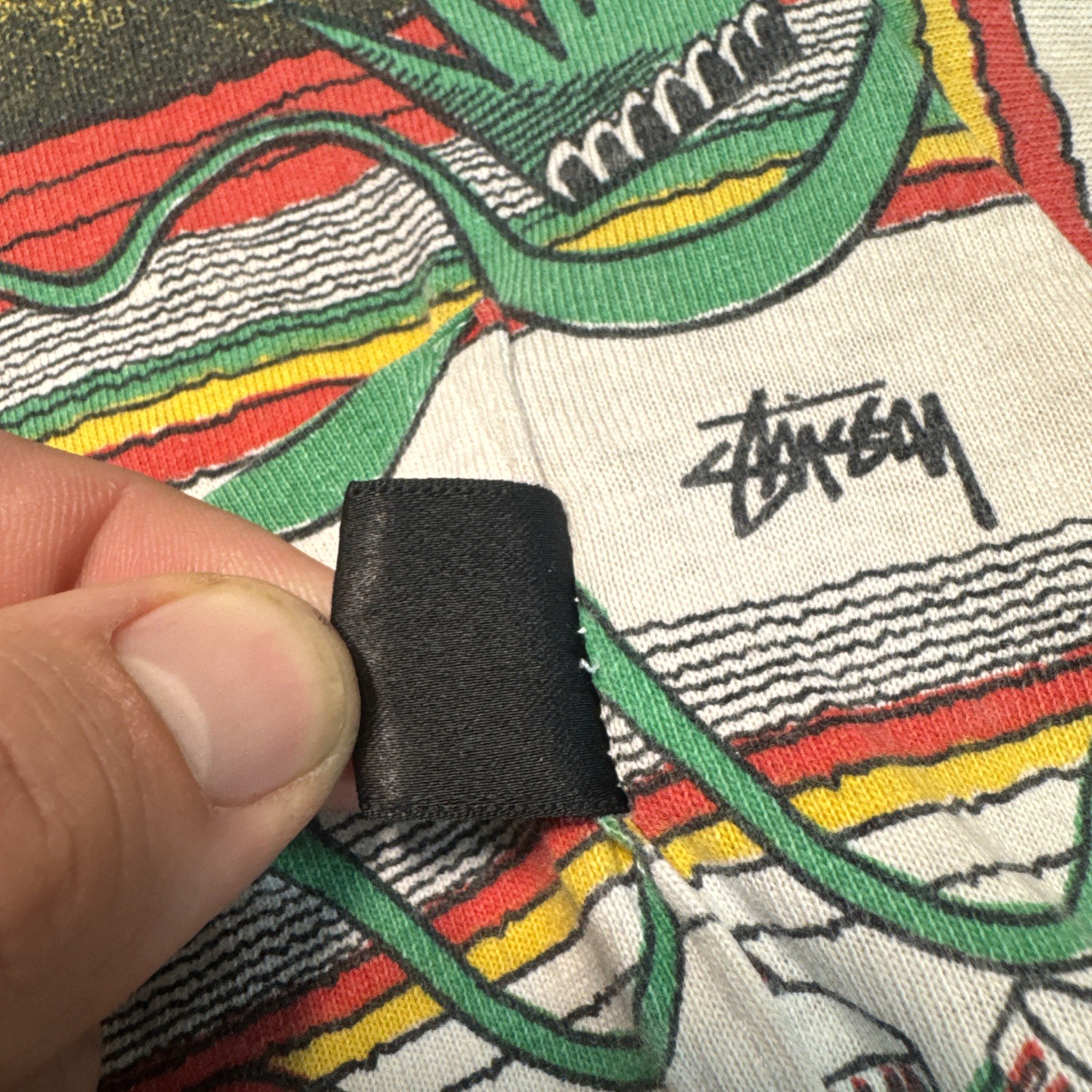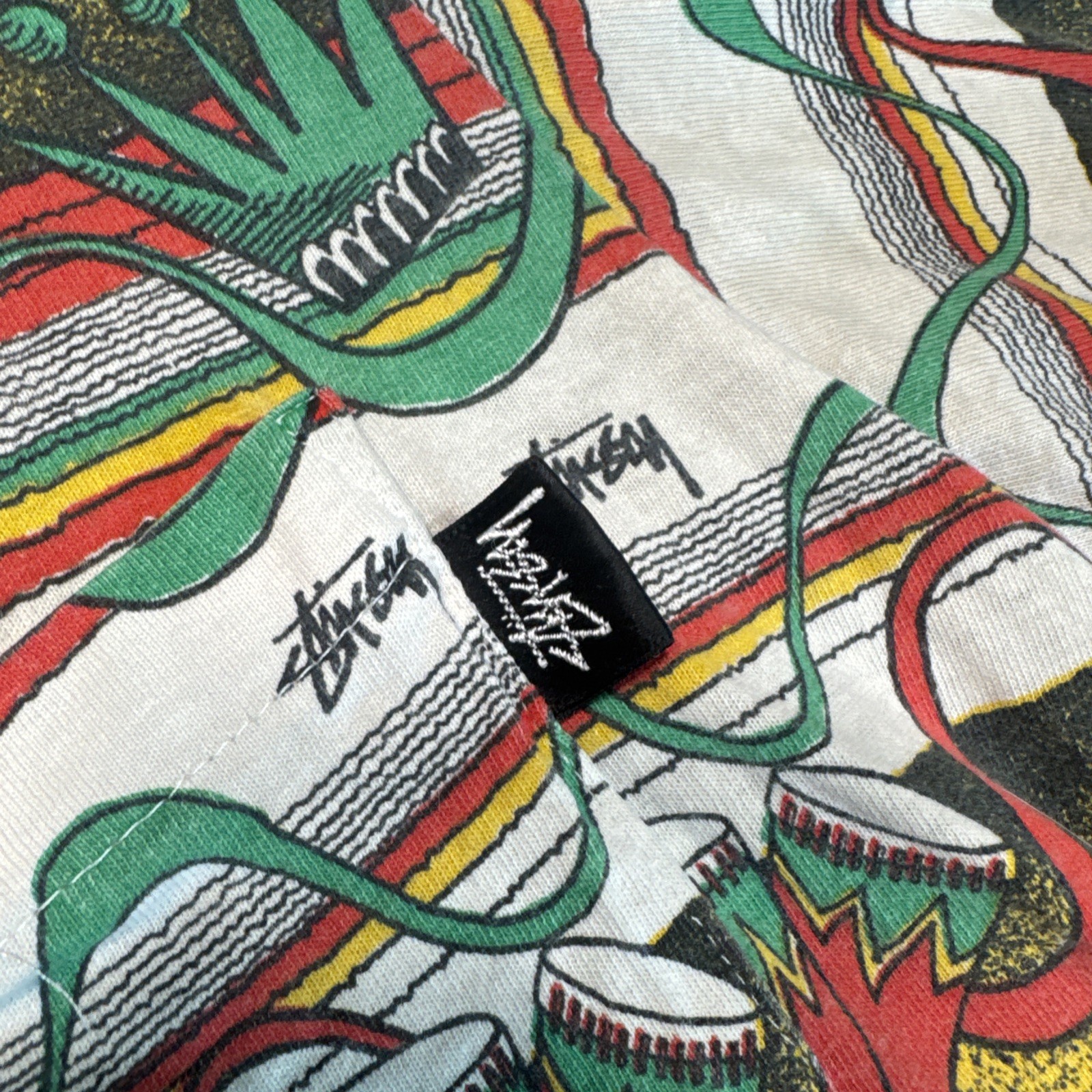 This rare Stussy shirt, featuring a graphic print with the iconic Bob Marley, is a must-have for any collector or fan of the legendary musician. Made from high-quality cotton jersey, this T-shirt is comfortable and easy to care for, making it a great choice for any season. The shirt has a regular fit and short sleeves, with a crew neck that showcases the multicolor design. The shirt's vintage look and feel are reminiscent of the 1980s, making it a great addition to any retro wardrobe. The double-sided design features the Stussy logo and Bob Marley's image, making it a statement piece that will stand out in any crowd. This T-shirt is machine washable and has been made with care in Australia.