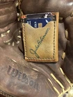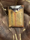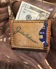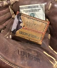 Repurposed rare vintage Caprico Jackie Robinson baseball glove made into a 4 pocket minimalist card holder/wallet. No other wallet like this. The facsimile signature of Jackie Robinson is vivid and clear, prominently displayed on one of the side pocket while the Caprico brand and glove style appear on the other. The side pockets are designed to securely hold several credit/debit and ID cards and a center pouch for folded cash bills. Perfect gift for any baseball enthusiast or historian.