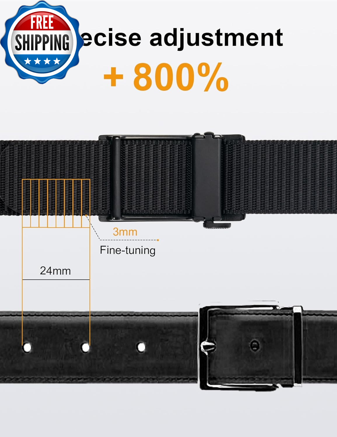 Ratchet Golf Belt for Men, Nylon Web Tactical Belt with Automatic Slide Buckle Product Description 1 One easy step 2 One button release 3 Comfortable fit JUKMO belt not deforming, not cracking after long-term use 1 Golf 2 Various combinations Pack belt in elegant gift box for you giving whoever you love, or yourself Various ratchet belt products Add to Cart Add to Cart Add to Cart Add to Cart Add to Cart Add to Cart Customer Reviews 4.4 out of 5 stars 16,751 4.5 out of 5 stars 343 4.6 out of 5 stars 71 4.6 out of 5 stars 586 4.6 out of 5 stars 1,893 4.4 out of 5 stars 2,551 4.3 out of 5 stars 606 Price $18.98 $ 18 . 98 $19.98 $ 19 . 98 $24.98 $ 24 . 98 $19.98 $ 19 . 98 $14.98 $ 14 . 98 $18.98 $ 18 . 98 — Size Range 29"-53" Waist 30"-58" Waist 28"-58" Waist 28"-58" Waist 30"-58" Waist 20"-52" Waist 18"-58" Waist Belt Width 1.3" 1.5" 1.5" 1.3" 1.5" 1.3" 1.3" Style Golf/Casual Dress/Golf/Casual Business/Dress Business/Dress Golf/Tactical/Casual Golf/Casual Golf/Casual Limitless Adjustments ✔ ✔ ✔ ✔ ✔ ✔ ✔ Gift Package ✔ ✔ ✔ ✔ ✔ ✔ ✔ Many comments say that the buckle of this belt is broken, what's going on? We have upgraded the structure of the belt buckle and it is now very durable. How is the quality of this belt? How long can it last? Our belt can be used for at least three years and the belt strap will not deform. How quickly can I adjust my belt when I sit down? All you need to do is gently push the lever on the side and the lock will unlock. It can be adjusted very small spacing to just fit for comfort. Is it suitable for gifts? What is inside the package? It is great choice for gift. It comes with 1*exquisite gift box, 1*zinc alloy buckle, 1*thickened and widened nylon belt. Item model number 1#FB Color Black Department mens Size Small-for Waist 34"-37"(Length 45") Package Dimensions 5.51 x 5.51 x 2.36 inches; 10.58 ounces Shipping Fast shipping is very important for us. Our standard US shipping service is FREE. Your order will be shipped within 2-3 business days upon full payment received. Your order will be delivered within 2-3 business days after the handling time. We only ship to the confirmed PayPal address. We reserve the right to cancel any order for any reason at any time. We are not responsible for undeliverable addresses. Returns and payment We offer a 30 days return policy from checkout winning date. We allow only PayPal as payment method FeedBack Your feedback very important to us, after you get your package and you are satisfied with our service please leave us positive feedback If you have any problem with your order / any questions please before leave any type of feedback Please visit our eBay store to check out other items for sale! Thank you for shopping at our store.