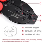 Ratchet Spark Plug Wire Crimper Set, Newdeli 25Pcs Red, Blue, Black Product Details Brand: Newdeli Color: Red, Blue, Black Item Weight: 0.93 Kilograms Handle Material: Rubber Grip Type: Ergonomic Manufacturer: Wenzhou Yuxuan Electronic Commerce Co.,LTD Part Number: 2048-25PCS Item Weight: 2.05 pounds Package Dimensions: 11.38 x 5.16 x 2.91 inches Country of Origin: China Item model number: 25Pcs Spark Plug Wire Crimper Set Style: ND-2048 with 24Pcs Terminals Included Components: Spark Plug Wire Crimper, Spark Plug Coil Terminals Batteries Included?: No Batteries Required?: No Brand: Newdeli Color: Red, Blue, Black Item Weight: 0.93 Kilograms Handle Material: Rubber Grip Type: Ergonomic 【MULTI-FUNCTION Spark Plug Wire Crimping Tool】The wire crimping tool works on spark plug wire diameter is 8.5-8mm. Use this wire crimping tool to quickly and effectively strip, cut, and crimp, saving time and effort. 【Package Include】Spark plug wire crimping tool kit includes a spark plug crimping tool, 24pcs 180 degree/90 degree/straight spark plug coil terminals, diameter is 8mm, fit for 8mm wire. They are made of high quality brass, with high electrical conductivity, reliable and stable. Black rubber boots are matches well with terminals, will keep them from dirt and moisture. 【PRECISE JAWS】 Well polished jaw and ratchet mechanism ensure high-quality crimping effect after repeat crimp, the stripper will work great and cut just enough insulation to not damage the conductor. 【RATCHET DESIGN】ND-2048 spark plug crimping tool for precise and repeatable crimp, preventing over crimping, the ratchet crimper tool has an adjustable compression wheel that adjusts automatically while reducing the strain it puts on your hand and elbow. 【PRESSURE REGULATING AND FORCED RELEASE DEVICE】:The crimping force of spark plug wire pliers can be adjusted according to different crimping terminals, giving appropriate crimping force to one-step crimping. When you want to stop crimping halfway through, just press this device to loosen the jaws.