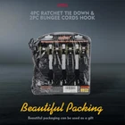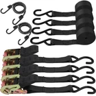 Ratchet Straps, 2,200 LB Break Strength, 4-Pack 15FT Ratchet Tie Down Straps Set for Motorcycle Straps Tie Downs, Appliances, Lawn Equipment, Cargo Straps for Trucks. 15-Foot Ratchet Belt Fastener Provides Durable, Reliable Security For Transporting a Variety of Items. Securely Fasten Motorcycles, Bicycles, Kayaks, UTVs, Boats, ATVs, Boxes, Boats, Coolers and Oher Cargo by Trailer or Roof Rack. Shoulder Straps are Reinforced with Premium Materials and Stitching to Maintain Unbreakable Ductile Strength Even When Loaded in High Winds and at High Speeds. Each Ratchet Strap has a Load Capacity of 733 Pounds and a Breaking Strength of up to 2,200 Pounds. Heavy Duty S-Hooks Hold Your Stuff in Place. The S-Hooks are Coated with Rubber to Increase Weather Resistance and Prevent Paint From Peeling. Easy to Grip Ratchet Mechanism Provides Excellent Control, Comfort and Hrip. Quick Release Latch, Quick Fastening. 1 "Flexible Webbing can Immediately Adapt and Lock Into Place, Ready to Unload, Pull the Black Spring Loading Handle to Achieve a Smooth, Fast Release. Ldeal for Porters, Landscapers, Boaters, Extreme Sports Enthusiasts, Campers, Construction, Tree Removal and Traction. Contains 4 Heavy duty ratchet buckles, 4 heavy-duty hook straps and 2 Bungee Cords for Securing Tools, Accessories & other Loose Gear During Travel.