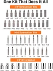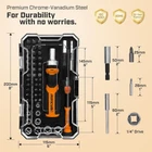 【Precision & Versatility for All Repairs】: Our Screwdriver Set features 21 pcs 1/4" driver bits and 20 pcs precision bits(Security Torx, Phillips, Flathead, Pozi, Hex, Tri-point), ideal for both everyday household repairs and intricate electronic maintenance. Perfectly tailored to meet diverse repair needs. 【Strongly Magnetized Bits for Efficient Work】: The all screwdriver bits are powerfully magnetized to securely hold small parts, making work easier and faster. This feature is particularly valuable for precision tasks, making these tools an amazing cool kits for man 【Ergonomic Efficiency with Ratchet Function】: Designed with a comfortable grip and an efficient ratchet mechanism offers three settings (forward, reverse, and locked), the Ironcube Screwdriver Set enhances work productivity, ensuring ease of use for prolonged tasks and tight spaces. 【Compact and Portable for Easy Storage and Accessibility】: All components are neatly organized in a durable, compact case (8x6x2 inches). This portable solution is perfect for storing in your home, car, or office, ensuring that you always have the right tools at hand. 【High-Quality & Worry-Free】: IronCube Screwdriver Set, engineered with Premium Chrome Vanadium steel, ensures durability and efficiency. Backed by a 24-month hassle-free return policy, it's built for reliability and customer satisfaction. Product Description The video showcases the product in use. The video guides you through product setup. The video compares multiple products. The video shows the product being unpacked. Ironcube 56 in 1 Multi Tool Screwdriver Set - the epitome of versatility for every scenario. Whether it's home repairs, office tasks, or intricate electronic work, this set adapts to all. An ideal gift for men, father or DIY Lover. it's the essential tool for everyday challenges. Comfort & Non-slip Ratchet Screw Driver Designed with a comfortable grip and an efficient ratchet mechanism, the Ironcube 56 in 1 multi tool screwdriver Set enhances work productivity, ensuring ease of use for prolonged tasks and tight spaces. Powerful Magnetized Bits For Speedy Installations Make your work a breeze with our screwdriver's super magnetic Bits! It grabs screws tight, so no more fumbling. Plus, it's great for picking up those tiny parts that fall into hard-to-reach spots. Perfect for quick fixes and DIY projects – a real time-saver! Why Choose Us Professional, Reliable, High-Quality Performance With 32 years of expert experience, our screwdriver has reached over 10.6 million users globally. We stand behind our product with a 24-month hassle-free return and exchange policy. Professional, Reliable, and built to last – this is our commitment to you. Versatile All-In-One Screwdriver Set Ultimate multi-tool screwdriver set, Standard Bits+Small Bits+Nut Driver All In One. Designed for versatility, it simplifies disassembly tasks with ease. Compact yet powerful, it's your go-to for tackling any size screw or nut. Your Professional Edge Elevate your craftsmanship with our all-in-one screwdriver toolset, designed for professionals. Featuring premium CR-V bits & sockets for ultimate durability and versatility. Compact, ergonomic, and precision-engineered to tackle any task, from intricate electronics to heavy-duty repairs. All-in-One Box Set Maximize efficiency with our All-in-One Box Set. Compact and portable, it organizes all essential tools in one place. Ideal for home, office, or travel, this set simplifies repairs and DIY projects, ensuring you're always ready for any task. Convenience in a box. Precision & Versatility for All Repairs 21 pcs Standard Bits Slotted:4mm(5/32"), 5mm(3/16"), 6mm(1/4") Phillips:PH1, PH2, PH2, PH2, PH3 Pozidriv:PZ1, PZ2, PZ3 Torx: T10, T15, T20, T25, T30, T40 Hex: 3, 4, 5, 6mm 20 pcs Precision Bits Slotted: 1.5, 2.0, 2.5, 3.0 Phillips:PH000, PH00, PH0 Torx: T5, T6, T7, T8, T9 Security Torx: T6H T8H T9H Hex: 1.5, 2.0, 2.5, 3.0, 4.0 Tri: Y1.5, Y2.0 10 pcs 1/4" Drive Sockets 10 pcs 1/4" Drive Sockets : 4, 5, 6, 7, 8, 9,10, 11, 12mm. 1 pcs Socket Adpter Drivers and Accessories 1 pcs Bits Holder For Regular Bits 1 pcs Bits Holder For Precision Bits 1 pcs Multi-bit Ratchet Screwdriver 1 pcs Multi-bit Precision Screwdriver Application Scenarios Meet every challenge with the 56 in 1 Multi Tool Screwdriver Set. A must-have for home improvement, office repairs, and electronic fixes. Essential for computer repair, it's the ideal men's tool kit, fitting perfectly into any basic home tool set. What is the overall weight and size? The case's size about 8x6x2 inches, and 1.5 pounds (0.68kg) wetght Does the screwdriver bit have magnetism? Yes, The all screwdriver bits are powerfully magnetized to securely hold small screws, making work easier and faster. Does this screwdrivers come with a ratchet function? Yes, it has a ratchet function with three settings: forward, lock, and reverse. What material is the handle of this screwdriver The material is a high-strength PP core with TPR soft rubber coating, which prevents shattering and also provides a comfortable grip. What is the Return and Exchange Policy for this wrench set? This product comes with a lifetime Return and Exchange. If you encounter any issues, please feel free to provide us with your feedback.