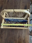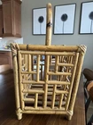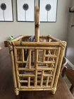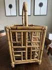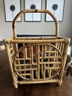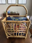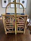 This magazine rack/record holder has some patina for its age and in one spot the wrapping is unraveling a little bit. Please pay close attention to the pictures as I have included areas showing age. Let me know if you have any questions or requests for additional photos for this.