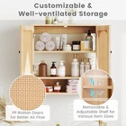 Product Description Description: Our charming wall cabinet features a 2-tier enclosed storage area, a spacious top, and a handy open cube, perfect for stowing away your body wash, towels, shaving gear, and other bathroom must-haves.With its deepened design, an adjustable and removable shelf, and stylish faux rattan doors, the wall cabinet offers a customizable and well-ventilated storage area that keeps your items organized with enhanced aesthetic appeal. Built with quality MDF and easy to upkeep, it is sure to stay stylish for years. Don't wait any longer. Give your home an upgrade today with our chic wall cabinet! Features: 2-tier cabinet for skincare products and laundry supplies Open cube for keeping towels and toiletries handy Spacious top doubles as additional storage space Removable and 3-tier adjustable shelf for various item sizes PP rattan doors for boho chic and better air flow Widened sides for ample storage depth and a tidier space High resistance to wear and scratch with quality MDF Ideal for bathrooms with its water-resistant finish Easy to open and close with rounded door knobs High quality metal hinges for years of use Effortless usability with its easy-to-clean surface Assembly required Specifications: Color: Natural Material: MDF, Engineered Wood, PP, PE, Metal Overall Dimension: 23.5” x 10.5” x 25.5”/60 x 27 x 65 cm (L x W x H) Open Cube Dimension: 22” x 4.5” x 9.5”/55.5 x 11.5 x 24.5 cm (W x H x D) Total Storage Height of Upper Cabinet: 19.5”/49.5 cm Adjustable Height of Shelves: 2.5”/6.5 cm Weight Capacity of Top: 22lbs/10 kg Weight Capacity of Each Tier: 22 lbs/10 kg Net Weight: 22 lbs/10 kg Package Includes: 1 x Bathroom Wall Cabinet 1 x User Guide