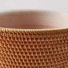 Headline : Elevate Your Bathroom with a Stylish Rattan Wastebasket Section 1: Product Overview Looking for a stylish addition to your bathroom that also serves a practical purpose? Introducing our handcrafted rattan wastebasket, designed to blend seamlessly into any bathroom decor. Crafted from durable polyethylene rattan woven over a sturdy iron frame, this wastebasket is both visually appealing and functional. Section 2: Key Features Natural Charm : Its honey-hued finish adds a warm, natural touch to your space. Versatile Use : Perfect for bathroom waste disposal or decorative storage, enhancing both form and function. Easy Maintenance : Features a removable plastic liner for hassle-free cleaning and disposal. Spacious Capacity : Holds up to 2.5 gallons of waste, ensuring you won't need to empty it frequently. Section 3: Dimensions & Final Thoughts Measuring 11"H x 9"D (Top) x 7"D (Bottom), this wastebasket is the perfect size for most bathroom countertops or corners. Add a touch of elegance and practicality to your bathroom with our rattan wastebasket today. On Jan 6, 2025 at 04:23:42 PST, seller added the following information: