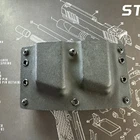 The Raven Concealment Glock 20/21 OWB Kydex Double Mag Holder is designed for GLOCK .45 ACP models and is made of durable Kydex material. This double magazine holder is intended for belt carry (OWB) at the 3 o'Clock position, offering quick and easy access to two spare magazines. It provides a secure and reliable way to carry extra ammunition for your GLOCK 20 or 21 while maintaining a low profile for concealment.