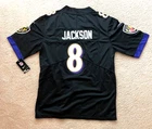 Embrace your fandom with this Ravens Lamar Jackson 8 Black Jersey, a must-have for any football enthusiast. This jersey, crafted with care, features high-quality materials and precise stitching, ensuring comfort and durability. It's a sleek representation of Lamar Jackson's dynamic presence on the field, designed for fans who appreciate a timeless piece of sports memorabilia. Available in a range of men's sizes, Small, Medium, Large, Extra Large, and 2X. The jersey boasts a patch-only design, with no printed graphics. This piece speaks to the minimalist aesthetic of true fans, providing a clean and classic look that's perfect for game days or casual wear. Ready to ship tomorrow, it's a seamless addition to your collection. Please review my feedback. Ships tomorrow. Thanks for looking.