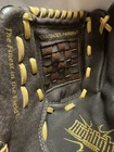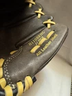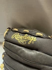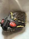 The Rawlings Highlight Series 11-inch Baseball Glove in brown is designed for intermediate players in baseball. Made of leather with a basket-web design, this glove is lightweight and features a padded adjustable wrist strap for comfort and flexibility. Specifically designed for right-handed throwers, this Rawlings glove is suitable for all positions on the field and is approved for use by USA Baseball (USAB). Ideal for unisex kids, this glove offers a 5-finger style and is easy to clean with a damp cloth. . . . . . .Please check photos for condition, Glove in in Great shape only worn 2-3x