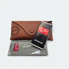 Ray-Ban Universal Eyeglasses a& Sunglasses Pouch Soft Leather & Hard Case Black / Brown Color (Come with Cleaning Cloth) $19.99 - Medium Size Sunglasses Premium Leather Soft Case - Printed Plain w/ Ray-Ban logo graphic - Includes a microfiber cleaning cloth (Except for Orange Pouch) - Durable exterior & soft anti scratch interior - Nice fashionable accent, to store and protect sunglasses or eyeglasses - Classic Finishing