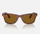 Ray-Ban Original Wayfarer Men's Sunglasses feature a classic design with a Tortoise Shell pattern and Brown frame. The lenses are Gradient and Tinted, providing UVB and UVA protection. The frame is made of Plastic and Acetate, with adjustable temples. The model is RB2140 902/51 in a Square style, suitable for men. The Lens Material options are Glass or Plastic, and the Temple Length is 150 mm.