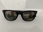 Ray-Ban's Ray-Ban Wayfarer Ease sunglasses in black and silver are a stylish addition to any man's accessory collection. Featuring a square style frame in silver metal and silver lenses with UVA protection, these sunglasses offer both fashion and function. Perfect for everyday wear, these brand new sunglasses exude a classic cool vibe that will elevate any outfit effortlessly.
