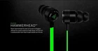 Razer Hammerhead Pro V2 Analog In-ear Gaming & Music Headphones Black/Green Brand new original with sealed retail box Description: Thoroughly re-designed, the durable Razer Hammerhead Pro has gone from strength to strength, with an improved body design and flat-style cables to further complement the mobile gamer in you. 10 MM EXTRA-LARGE DYNAMIC DRIVERS FOR STELLAR AUDIO FIDELITY: Experience superior acoustic clarity and improved bass performance through the upgraded extra-large 10 mm dynamic drivers, over 20% larger than the original Razer Hammerhead, featuring an optimized inner acoustics chamber. ALL-NEW BODY DESIGN WITH FLAT-STYLE CABLES FOR TOUGHNESS ON THE GO: The Razer Hammerhead Pro complements every style while retaining its signature durability factor. Designed with a high-quality body to enable improved acoustics, the new flat-style cables also facilitate fuss-free mobility and easy storage while you’re on the move. IN-LINE MICROPHONE WITH 3 QUICK ACTION CONTROL BUTTONS FOR iOS AND ANDROID DEVICES: The discreet in-line microphone on the Razer Hammerhead Pro has been further enhanced with a 3-button remote control. Whether you need to control the volume or answer a call, the 3 Quick Action Control buttons give you greater flexibility with your mobile devices. Features: - Dynamic drivers: 10mm Extra-Large Dynamic Drivers for Stellar Audio Fidelity - Flat-style cables: All-New Body Design with Flat-Style Cables for Toughness on the Go - Enhanced Passive Noise Isolation with Bi-Flange Tips - In-line microphone: In-line Microphone with 3 Quick Action Control Buttons for IOS and Android Devices Frequency Response: 20 Hz–20 KHz Impedance: 32 Ω ± 15% Sensitivity (@1 kHz): 102 ± 3 dB at 1 kHz max Input power: 5 mW max Drivers: 10 mm, with Neodymium magnets Connector: 3.5 mm, angled gold-plated Cable length: 1.3 m/4.27 ft Approximate weight: 19.6 g/0.04 lbs. Microphone: Frequency response: 50–10,000 Hz Signal-to-noise ratio: ≥ 55 dB Sensitivity (@1 kHz): -45 ± 3 dB Pick-up pattern: Omnidirectional In-line Remote: Volume control buttons: Volume Up/Down Changing tracks Center control button: Play/Pause Accept/End call Package Include: -Razer Hammered Pro In-Ear Gaming Headset -A pair of bi-flanges and three more pairs of ear tips in small/medium/large sizes -Audio/mic splitter cable for PC connection -Carrying Pouch. -Luxury Retail Packaging Box