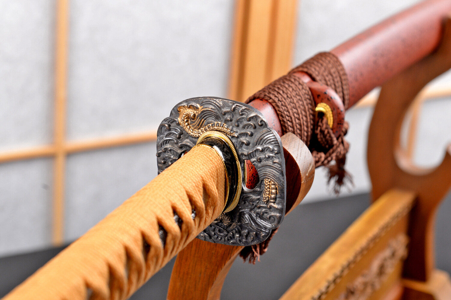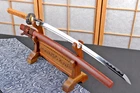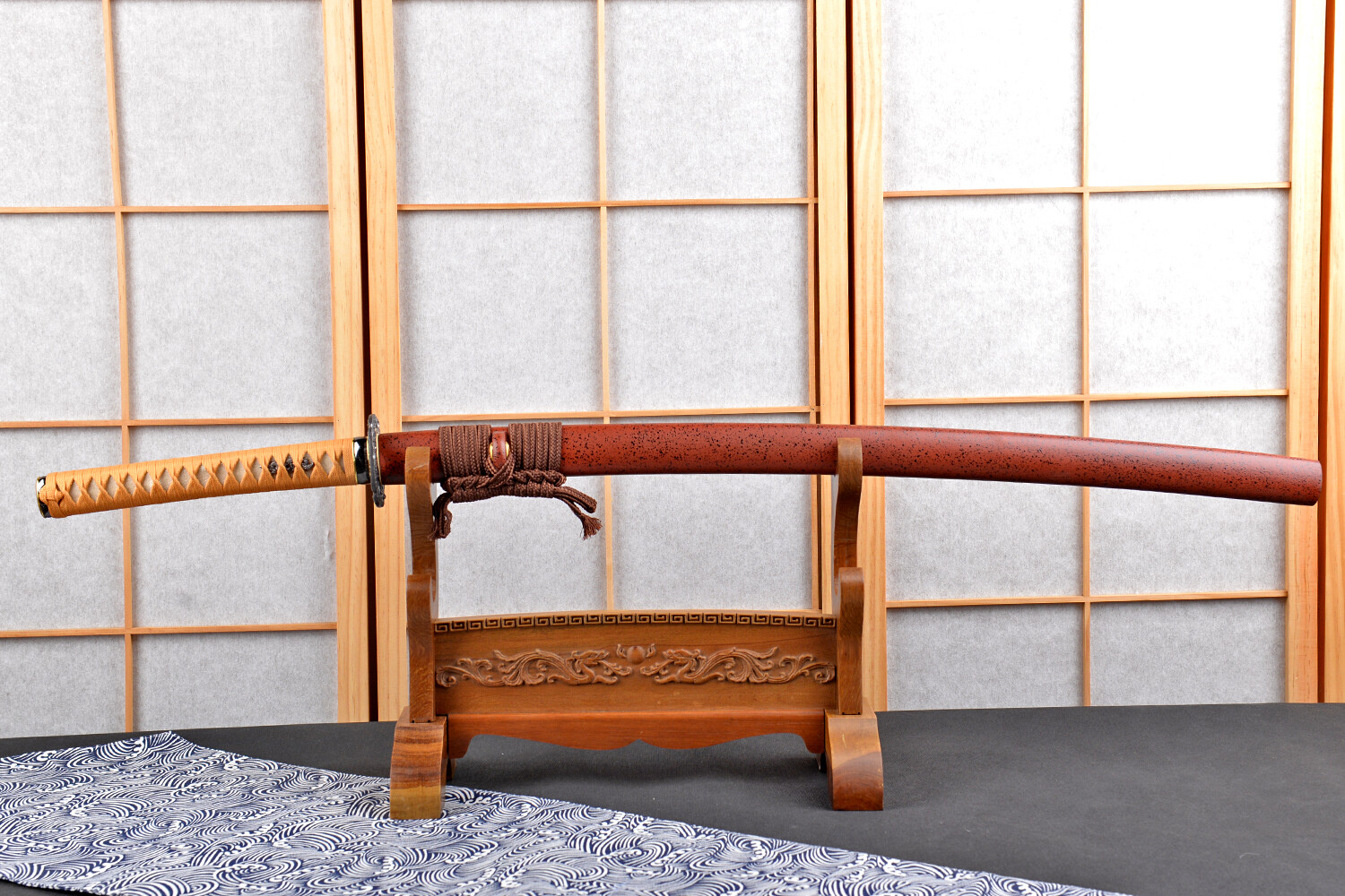 Product Parameter: Item number: LQ1903023 It can cut bamboo , paper , branch , or water bottles etc. It's a functional sword . Blade material: T10 high carbon steel Overall Length: 103cm/40.6" Blade Length: 70cm/27.5'' Handle Length: 26 cm/10.24'' Blade Widdth: 3.2 cm/1.26'' Blade Thickness: 0.7cm/0.28'' Bo-hi(blood groove): Yes Blade HRC(hardness): 56 Tang(nakago): Full tang (2 meguki fix the handle vertically, very firm) Fitting: Alloy tsuba & fuchi & kashira & menuki + Brass habaki & seppa Craft: Handmade traditional forged, polished, Water quenching treatment, hand-polishing, etc . * The steel we use is not the normal steel with the truck or cars or other life electrics, the steel use for the blade contents much more carbon and the purity can not be comparable. * All the fittings can be replacement. we can customize wakizashi size for you . Unsharpened blades are no problem. * The color and style of sword bag is random. If you want a specific style ,please contact us . * The sword stand is not include . Please send us the number on the fittings you want through EBAY MESSAGE SYSTEM BEFORE YOU PURCHASE, thank you very much! Manual grinding: Using the unique bright stone of Longquan Town, hand grinding, very test sword casting skills and technology, grinding out the pattern effect is special texture! Ancient quenching: Modern vacuum heat treatment can meet the hardness requirements of most swords, but the traditional quenching method has better effect, can soften the medium strip steel, and the hardness is higher. Tsuba & Fuchi & Kashira & Habaki Saya Additional Service About us Delivery details Tsuba & Fuchi & Kashira & Habaki Alloy Tsuba Iron Tsuba ( extra $10) Brass Set ( extral $50 ) Alloy Fuchi & Kashira Habaki TSUKA-ITO & SAGEO Tsuka-ito is the wrapping of the tsuka and sageo (下緒 or 下げ緒) is a hanging cord that is passed through the hole in the kurigata (栗形) of a Japanese sword's saya. SAMEGAWA Samegawa(鮫皮)is the ray or shark skin wrapping of the tsuka (handle/hilt). Saya Please contact us before placing an order to see if there is any stock available, as well as any additional charges. OX Horn Saya Additional Service It's free for engraving English words, Chinese Characters and Japanese Kanji , etc. You need pay extral $20-30 for engraving patterns. Hamon We can add or remove the machine-made wavy hamon for free. Bo-hi ( Blood Groove) Usually thought be used for bloodletting only. It is also used to lighten the weight of the sword. We can add or remove Bo-hi for free Sharpness Most of our blades are sharp. We can also make the blade unsharpened for free if you require. Colored Blade If you want to change to a different color blade, please contact us before purchase. Matching Swords Set If you buy one katana, we can make a matching Wakizashi or Tanto for you. The price varies from different swords. Please contact us if you need make custom matching set. About us We have our own sword-casting factory. The factory is located in Longquan, a small town with a long history of sword-casting in China. Most of the famous Swords in China are made there. Rich raw materials, skilled technology, traditional sword casting technology from generation to generation. Manual production really takes a lot of time. We will prepare most products in advance ,and arrange delivery within about a week. However, sometimes the delivery time is delayed due to weather or raw materials,etc. we hope to get your understanding. Feel free to contact us to inquire about the status of your order. Each handmade sword is unique. Our swords are great for gifts or for your own collection. Our swordsmithing master makes every sword attentively, hope you can feel our sincerity. We will also give you the best customer service, any questions please feel free to contact us. Delivery details a) Import duties, taxes and charges are not included in the item price or shipping charges . These charges are the buyer’s responsibility. b) If you do not receive the package, or the package is damaged during transportation. We'll take care of it. Please feel free to buy. c) If it is mentioned in the product description that the package includes the sword bag or sword holder , the style will be random. The sword holder or sword bag on the ebay picture is the props we use for shooting. If you really like a style, please contact us before buying. d) If you have any problem after recieve the package (wrong size, wrong style, etc.). We always provide you with the best after-sales service. Please give us a chance to help you before you give us a bad feedback . Thank you very much!