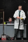 Herbert West has a good head on his shoulders… and another on his desk... From Re-Animator, the movie based on HP Lovecraft’s classic tale of terror, presents the mad scientist Herbert West in action figure form! The 1985 movie has achieved cult status for its dark and hilarious mix of science fiction, horror and comedy, and starred Jeffrey Combs as a student who will stop at nothing to perfect his reanimation . As a clothed action figure, Herbert stands 8” tall and is dressed in his lab coat. He comes with a bottle of reanimation reagent, , bloody shovel, Rufus the cat, and a tray containing the severed head of the last guy who tried to steal his invention. Resealable clamshell packaging. Based on the 1985 film Re-Animator Herbert West stands about 8 inches tall are highly poseable Accessories included: bottle of reanimation reagent, , bloody shovel, Rufus the cat and tray with severed head Features: fabric clothing and fabric lab coat Resealable clamshell packaging
