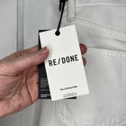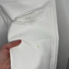 This is the Re/Done 70's Stove Pipe Jeans in a size 25 and white color. They are 100% cotton, feature a button fly, distressing at the knee and a raw hem at the ankle. They are new with tags, but there is a stain on the front left leg (pictured) - I have not attempted to stain treat them as they are new with tags. Approximate Measurements: Length: 38" Rise: 11" Waist: 26.5" Inseam: 26.5" Leg Opening:14" If you have any other questions or would like any additional measurements, please ask!