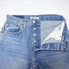 Style Profile: Retro, Classic, timeless, organic cotton, 100% cotton Condition: excellent. No notable flaws or sins of heavy wear. Size: Tagged size 27. Please see measurements (taken lying flat). Waist 14” Rise 11” Inseam 27” Leg opening 7” Additional Details: Wash is Medium Vain Features a worn indigo cast in rigid cotton, a classic button fly, and a raw hem. Fitted through thigh with a straight leg down to your ankle. 100% organic cotton