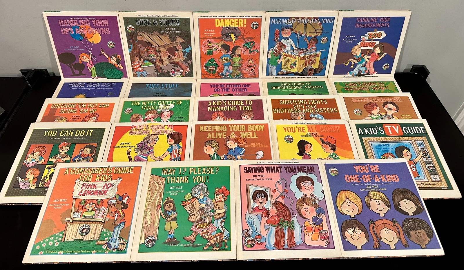 Ready Set Grow Books - Lot of 24 by Joy Wilt (Weekly Reader, Hardcover). Titles Include - Handling Your Ups and Downs, Mine & Yours, Danger!, Making Up Your Own Mind, Handling Your Disagreements, Using Your Head, Tuff Stuff, You're Either One of the Other, A Kid's Guide to Understanding Parents, A Kid's Guide to Managing Money, Checking 'Em Out and Sizing 'Em Up, The Nitty-Gritty of Family Life, A Kid's Guide to Managing Time, Surviving Fights With Your Brothers and Sisters, Needing Each Other, You Can Do It, A Kid's Guide to Making Friends, Keeping Your Body Alive and Well, You're All Right, A Kid's TV Guide, A Consumer's Guide for Kids, May I? Please? Thank You!, Saying What You Mean, You're One of a Kind. Ships via USPS Media Mail.