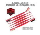 ESSENTIAL GUN CLEANING TOOLKIT – A comprehensive gun detailing brush set with precision-shaped cleaning tools; perfect for everything from scrubbing large firearm surfaces to detailing intricate gun components. VERSATILE GUN CLEANING ACCESSORIES – Includes four distinct gun brushes, eight uniquely shaped picks and hooks, and an angled phosphor bronze scrubbing brush for thorough maintenance. SAFE FOR FIREARM FINISHES – Effectively removes grime while being gentle on all firearm surfaces, including polymer, Cerakote coatings, and other finishes—ideal for cleaning your Glock, rifle, or shotgun. MULTI-PURPOSE DETAILING BRUSH SET – Each brush, pick, and hook is designed not only for firearms but also for car detailing, boat maintenance, golf gear, and outdoor equipment like hunting and camping tools. ERGONOMIC DESIGN – Triangular engineered resin handle with grooved grips for enhanced control and maneuverability, ensuring a secure and comfortable hold during use.