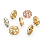 18K solid yellow gold eternity spacers with clean crisp brilliant cut real diamonds, opulent findings for you high-end gold jewelry! Size and details mentioned below: 4mm - 2mm hole size - 1mm 8pcs - 14k 0.17gms - 18k 0.21gms 6mm - 2mm hole size - 1mm 13pcs - 14k 0.40gms - 18k 0.45gms 8mm - 2mm hole size - 1mm 18pcs - 14k 0.55gms - 18k 0.65gms 10mm - 2mm hole size - 1mm 23pcs - 14k 0.75gms - 18k 0.90gms MATERIAL: Solid Gold, Genuine Natural Diamond * Please note that Gold orders are made to order in your choice of Gold KT / Color & Beads drilled to choice so please look at handling time carefully before placing orders.
