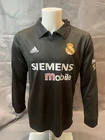 Immerse yourself in the glory of Real Madrid's historic era with this retro 02/03 away jersey, featuring the legendary Zinedine Zidane's name and number, #5. A must-have for any soccer aficionado, this black jersey celebrates the finesse of La Liga giants with a timeless design. Tailored to a men's large size, it offers both comfort and a stylish tribute to the sport. Whether you're cheering from the stands or reliving classic football moments at home, this jersey is perfect for fans who appreciate the sport's rich history. Its long sleeves make it an ideal choice for cooler weather, ensuring you can display your team pride year-round. With a capacity to hold 8 oz of your favorite beverage, it's also practical for game day essentials. Order as soon as possible to receive before holidays if you have any questions lemme know!