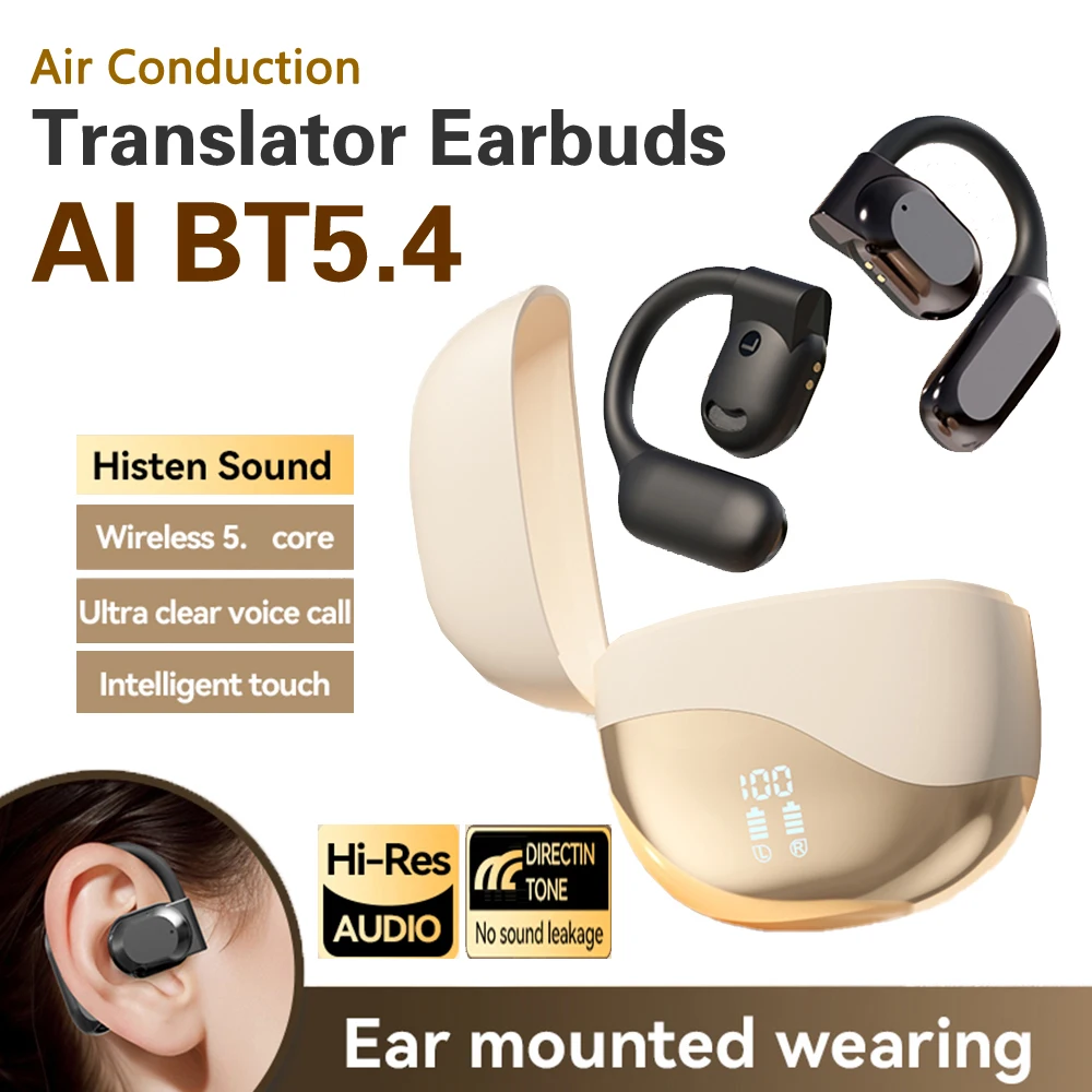 Intelligent Translator Earbuds Bluetooth-Compatible 5.4 Noise Cancelling Real Time AI Translator Earbuds Ear Hook Two-Way Voice Translator for Sports Business Travel Feature: 1. Intelligent Translator Earbuds: Experience comfort and style with our intelligent translator earbuds. Designed with lightweight materials and an ergonomic ear-hook design, they ensure long-lasting wear without discomfort, making them perfect for all-day use. 2. Real Time AI Translator Earbuds: Stay powered throughout your day with our real time AI translator earbuds. Featuring an intelligent LED power display, low-power consumption chip, and a high-capacity lithium battery, these earbuds offer extended playtime and reliable performance. 3. Two-Way Voice Translator: Enjoy seamless connectivity with our two-way voice translator, equipped with Bluetooth-Compatible 5.4 technology. This ensures quick, stable connections for uninterrupted music streaming and clear voice calls, enhancing your communication experience. 4. Smart Voice Translator: Customize your audio experience with our smart voice translator, which delivers high-definition sound quality. Users can freely adjust sound settings to match personal preferences, ensuring an optimized auditory experience every time. 5. Translation Earphones: Enhance your communication with our versatile translation earphones. Not only do they provide translation, but they also serve as excellent devices for music streaming and phone calls, offering unmatched convenience and portability. Specification: Origin: Mainland China Bluetooth-Compatible pairing: M62 Solution: Bluexun 5656C2 Bluetooth-Compatible version: V5.4 Supported protocols: A2DP, AVRCP, HFP Speaker: F14.2 copper ring Transmission distance: 10 meters Talk time: 8-9 hours Headphone battery: 80 mAh 401030 Cable battery: 300 mAh Headphone size: 60*39mm Cable size: 67*65*35mm/2.64x2.56x1.38inch Color box size: 115*93*37mm Gross weight: 118g Note: Due to different monitor settings and lighting conditions, the actual color of the item may vary slightly from the pictures. Thanks for your understanding! Please allow a 1-2 cm difference in measurements due to manual measuring. 2 X Translator Earbuds 1 X Charging Case 1 X Charging Cable 1 X Instruction Manual