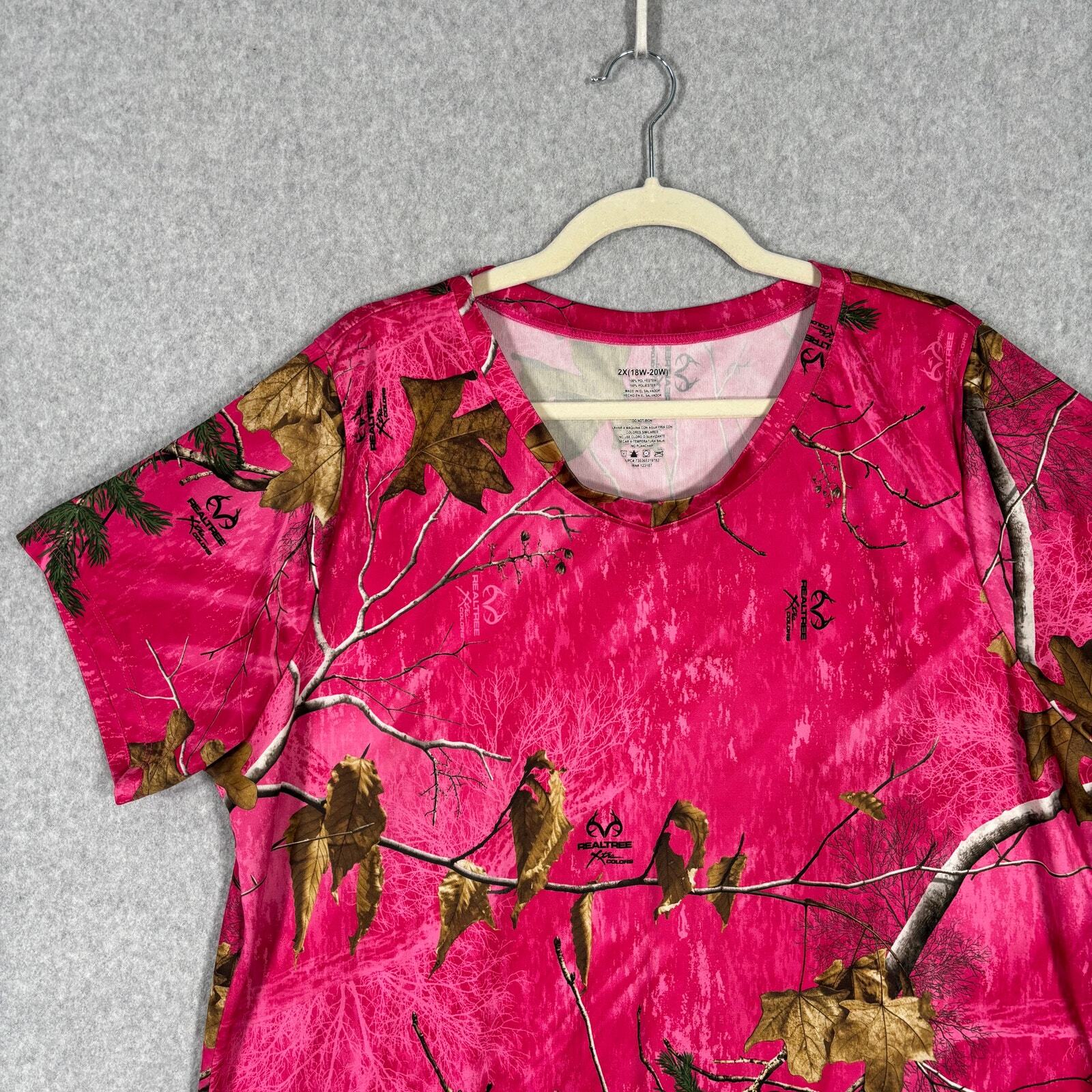 Realtree Shirt Womens 2X Pink Camo Xtra Colors Short Sleeve Performance Polyester V Neck Active Outdoor EXCELLENT Pre-owned condition: minimal to no signs of wear, no stains or holes SKU 6160 **Please see all pictures for full item condition, details, and approximate measurements** - Ships Same/Next Day, Professional Seller, Offers Welcome, Like or watch for price drops - Item in photos is exact item you will receive - I list new items daily, be sure to browse my store/closet for more items - Bundle pricing and combined shipping available for additional savings - Feel free to send a message