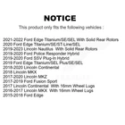 Transit Auto Rear Disc Brake Rotors And Semi-Metallic Pads Kit K8S-101978 π¦ Included π¦ 2x Rear Disc Brake Rotor (Both Side) 1x Rear Semi-Metallic Brake Pad Set (Hardware Included) Transit Auto offers the most comprehensive and highest-quality replacement kits on the market. Thanks to our cutting-edge AI, in-house product team, and proprietary fitment data, we are able to build and deliver the most accurate kits on the market. All our kits include the highest-quality parts on the market, sourced directly by Transit and its sub-brands. Backed by over 50 years of experience and with in-house quality assurance, every customer can purchase and drive with peace of mind. Transit Auto is the largest kit supplier, with over 100,000 kits, and the only supplier to provide the true picture of the kits and the complete buyer's guide. Whether you are a Do-It-Yourself enthusiast, a Mechanic, or a Garage, we have the right kit for you. βοΈ Features βοΈ SIM Exclusive low-resin Semi-Metallic formula eliminates brake fade and glazing for optimal braking power Exclusive G3000 heat-flowed castings steel give our rotors the ideal balance between tensile and hardness and provide consistent wear, long life, and quiet operation High density friction material to ensure a long pad life and excellent stopping power Manufactured with multiple alloys for improved heat dissipation and performance Premium shims for provides increased strength and insulation against noise Double disc ground finish eliminates lateral run-out and DTV (disk thickness variation) issues on the rotor and improves pad-rotor bed-in Precise laser-cut channel cut provides a superior thermal stability and prevent overheating Kit Includes: 2x Rear CMX Disc Brake Rotor (Both Side) + 1x Rear Semi-Metallic SIM Brake Pad Set (Hardware Included) Kit Variations: K8A-100865 K8A-100867 K8C-101791 K8F-101976 K8T-102113 KDA-102067 KDA-102068 KDC-100749 KDF-100546 KDS-100498 KDT-100567 KGA-103403 KGA-103404 KGC-101707 KGF-101575 KGS-101492 KGT-101681 Part Reference Numbers : SEE AC85645 SEE AR85645 SEE CR85645 SEE PR85645 YH540113C YH540113 120.61113 121.61113 BR901426 54194 2488812107 488812107 7488812107 901426 940891 640007 Q1682151 682151 AFO1036 TQ8157 BD180699 8893 SG8893X PF8893X AD8893 SS8893X D1665 1665 β οΈ This product will only fit on the following vehicles β οΈ 2021-2022 Ford Edge Titanium/SE/SEL With Solid Rear Rotors 2020 Ford Edge Titanium/SE/ST-Line/SEL 2019-2023 Lincoln Nautilus With Solid Rear Rotors 2019-2020 Ford Police Responder Hybrid 2019-2020 Ford SSV Plug-In Hybrid 2019 Ford Edge Titanium/SEL Plus/SE/SEL 2018-2020 Lincoln Continental 2018 Lincoln MKX 2017-2020 Lincoln MKZ 2017-2019 Ford Fusion Sport 2017 Lincoln Continental With 16mm Wheel Lugs 2016-2017 Lincoln MKX With 16mm Wheel Lugs 2015-2018 Ford Edge π Interchanges numbers π SEE AC85645 SEE AR85645 SEE CR85645 SEE PR85645 YH540113C YH540113 120.61113 121.61113 BR901426 54194 2488812107 488812107 7488812107 901426 940891 640007 Q1682151 682151 AFO1036 TQ8157 BD180699 8893 SG8893X PF8893X AD8893 SS8893X D1665 1665 π Kit Variations π K8A-100865, K8A-100867, K8C-101791, K8F-101976, K8T-102113, KDA-102067, KDA-102068, KDC-100749, KDF-100546, KDS-100498, KDT-100567, KGA-103403, KGA-103404, KGC-101707, KGF-101575, KGS-101492, KGT-101681 π‘οΈ Warranty π‘οΈ This product is covered by a limited lifetime warranty against manufacturer defects. See manufacturer website for details and form. Keywords & 2015 2016 2017 2018 2019 2020 2021 2022 2023 abutment And Both Brake Continental Davidson Disc Driver Ecoboost Edge Ford Full Fusion hardware Harley Hybrid Kit Kits Left Lightning Lincoln metallic MKX MKZ Motorcraft n Nautilus Passenger Plug-In Plus Police Rear Responder Right SE SEL semi semi-metallic Set Sides SIM Sport SSV ST-Line Titanium With